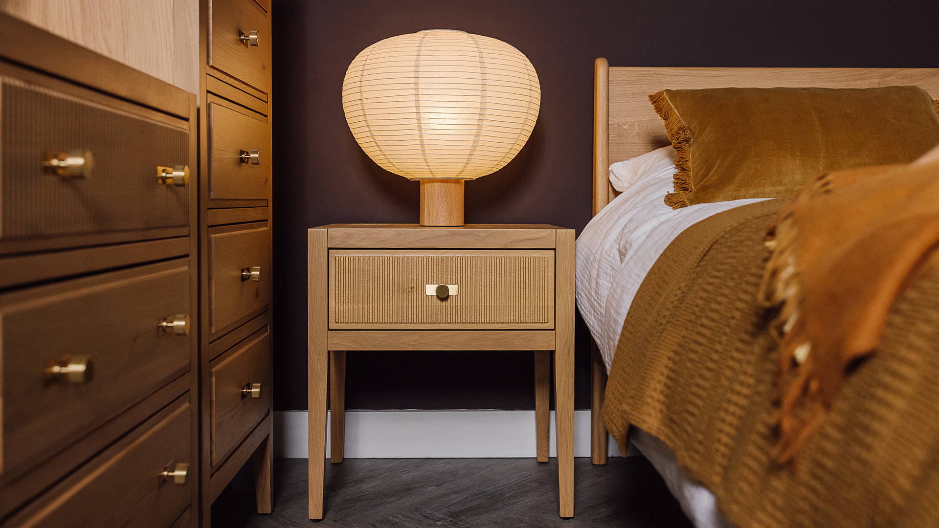 Gently inspired by the art deco design movement of the early 20th century, this collection is characterised by a unique, reeded drawer front. Finished with brass hardware, these pieces boast a classic, retro-inspired design that is grounded in modernity thanks to its solid materials.