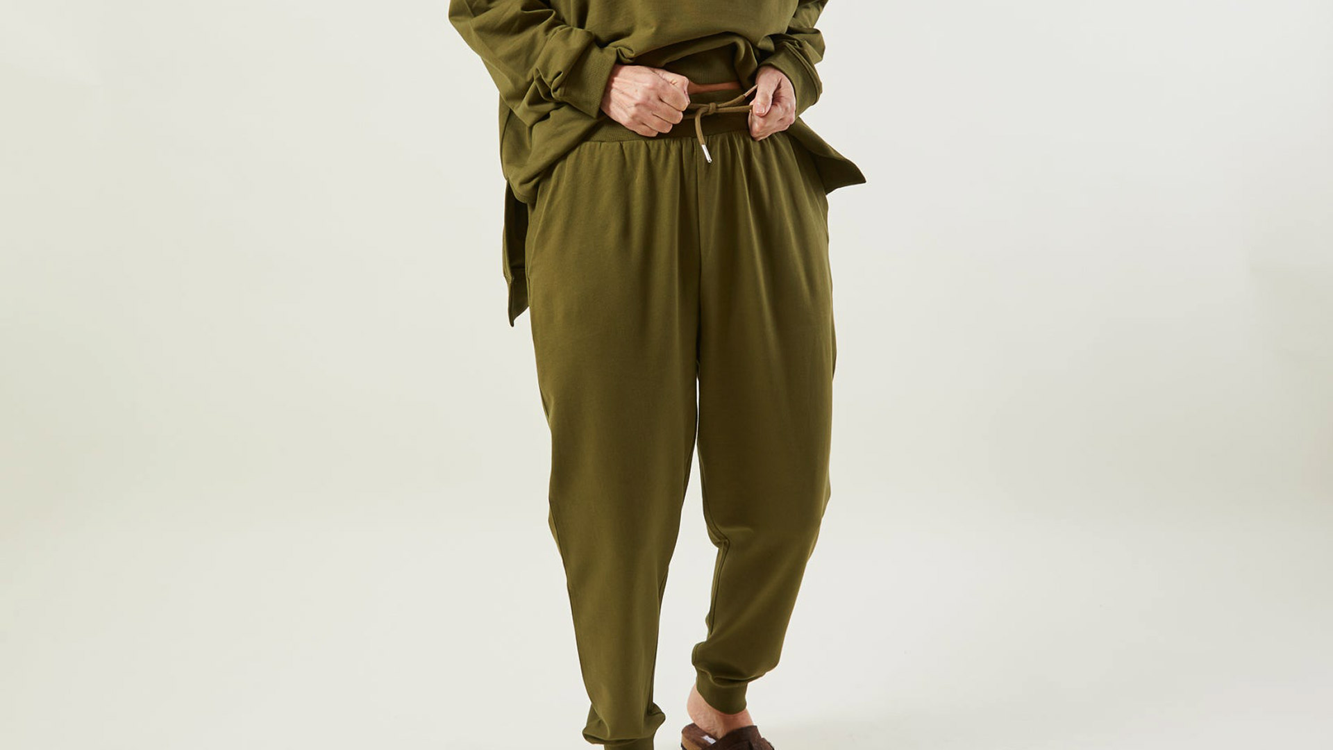 Relaxed and comfortable, pure cotton joggers and matching sweatshirts in charcoal, khaki or stone. Choose from either a cropped or oversized sweatshirt and pair with cosy joggers. Go for a matching set or make your own colour combo!