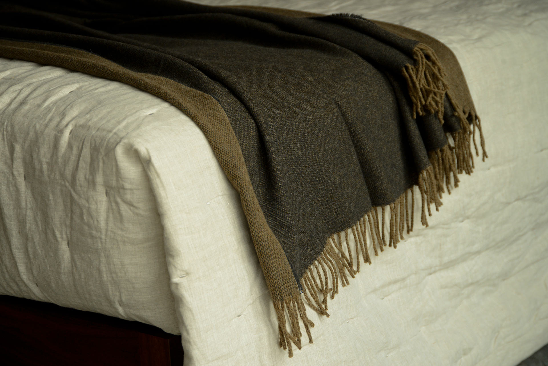 Cosy and luxuriously soft reversible merino lambswool throws. Modern and stylish, these blankets are large enough for over the end of your bed and soft enough to snuggle under on the sofa. Finished with a fringe to two ends across the width and a contrasting colours to the front and back. Available in two contemporary colour choices.