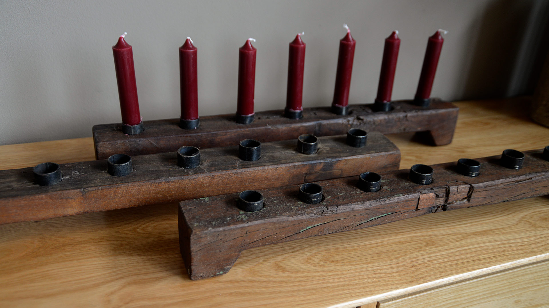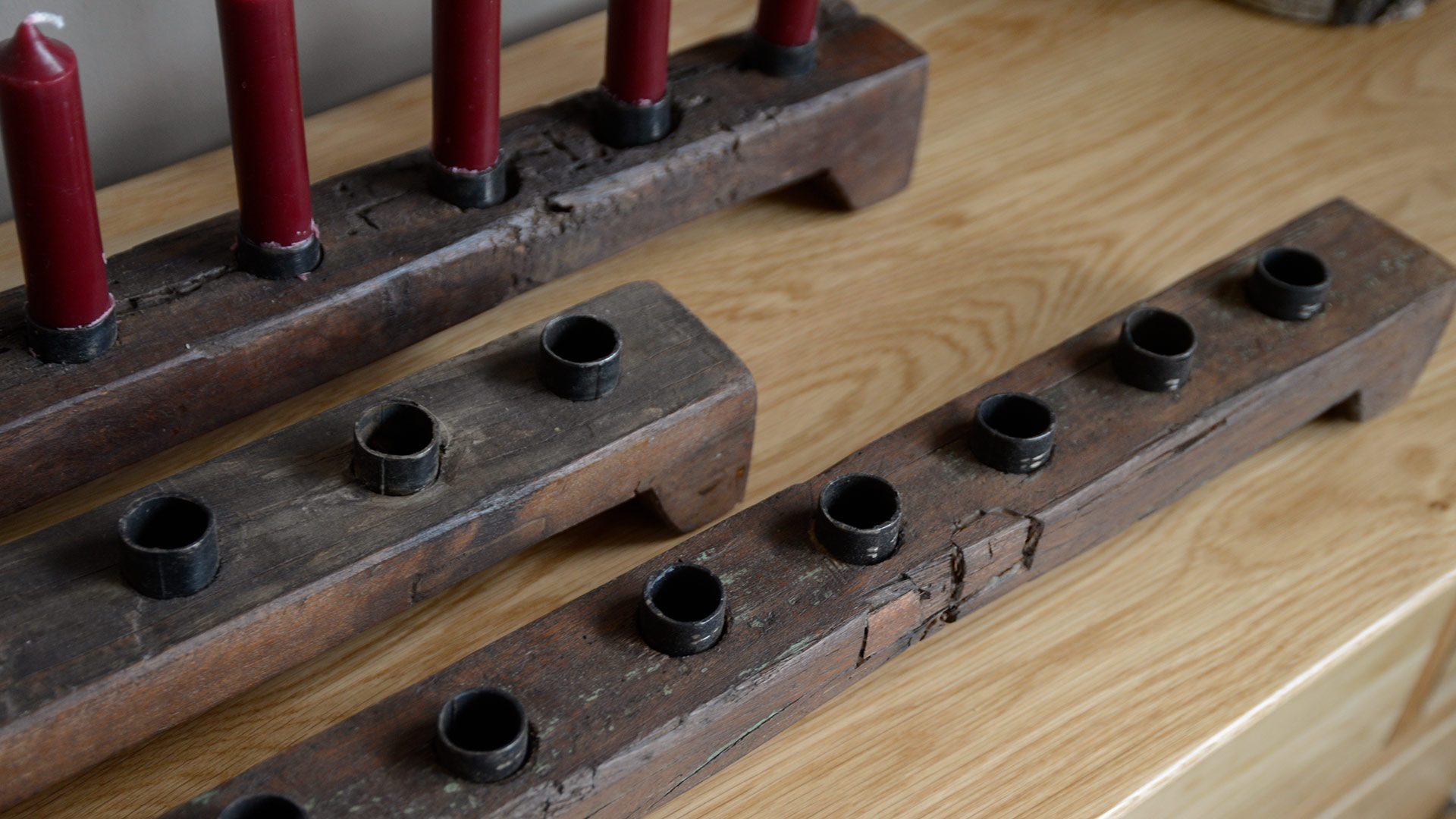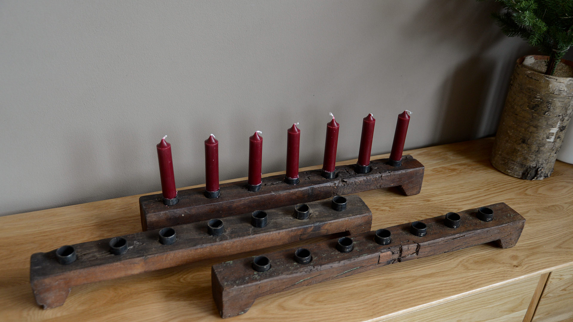 Rustic, dark wood candle bridges made from reclaimed wood. Each one of these candle bridges in made from an individual section of reclaimed wood, meaning each features its own marks and character. Slight variations in shape and colour are to be expected. Ideal for bringing a touch of rustic, industrial charm to any room.