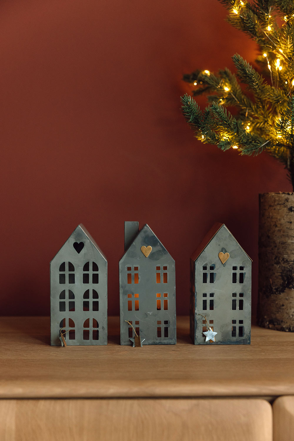 These rustic metal house tea-light holders are perfect for year-round use. Choose from one of three house designs, each of which has a sweet little heart detail above their cut-out windows.