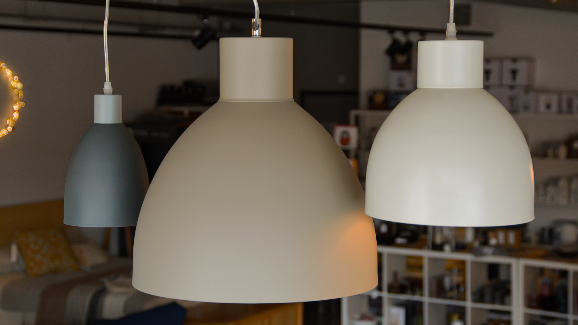 A selection of contemporary pendants; end of line sale, limited colours and sizes available. Beautifully formed, industrial style light shades perfect to bring a bit of personality to any room. Available in soft white, stone and dark grey. Please select options from the drop down menu to see remaining stock. Full dimensions listed below.