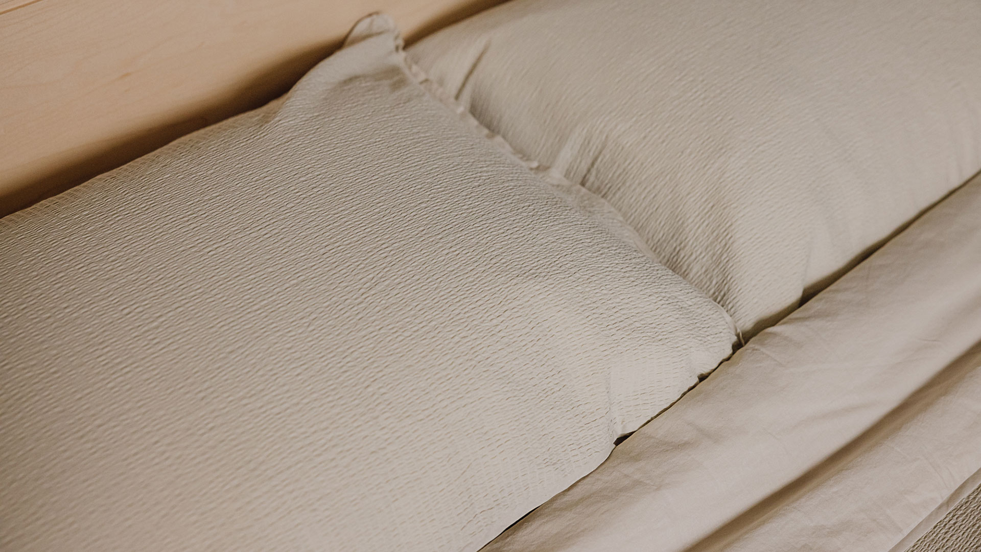 Each seersucker cotton duvet cover set also includes two housewife pillowcases, which have an envelope closure.