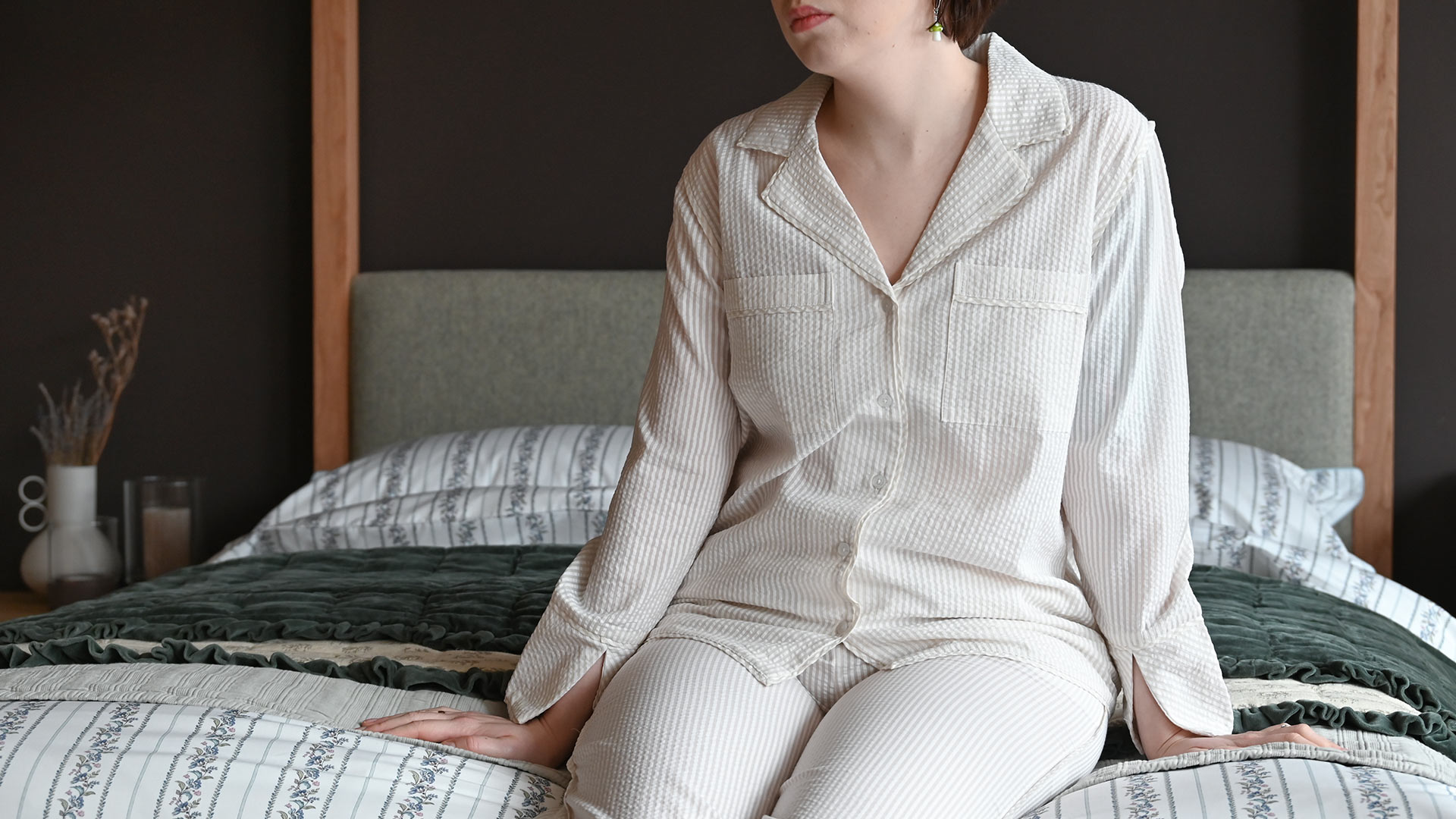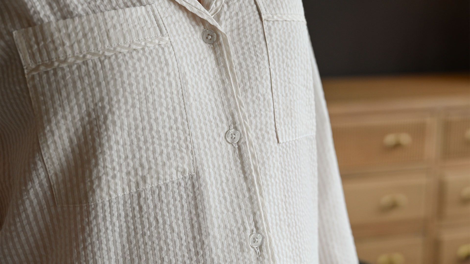 Lightweight and cosy, these seersucker cotton pyjamas feature a minimal, subtle design. The soft beige stripes, paired with the gentle texture of seersucker fabric are a winning combination, offering a tranquil, homely feel. Ideal for snuggling up in bed in after a warm bath. As they’re pure cotton, they’re also highly breathable and durable.