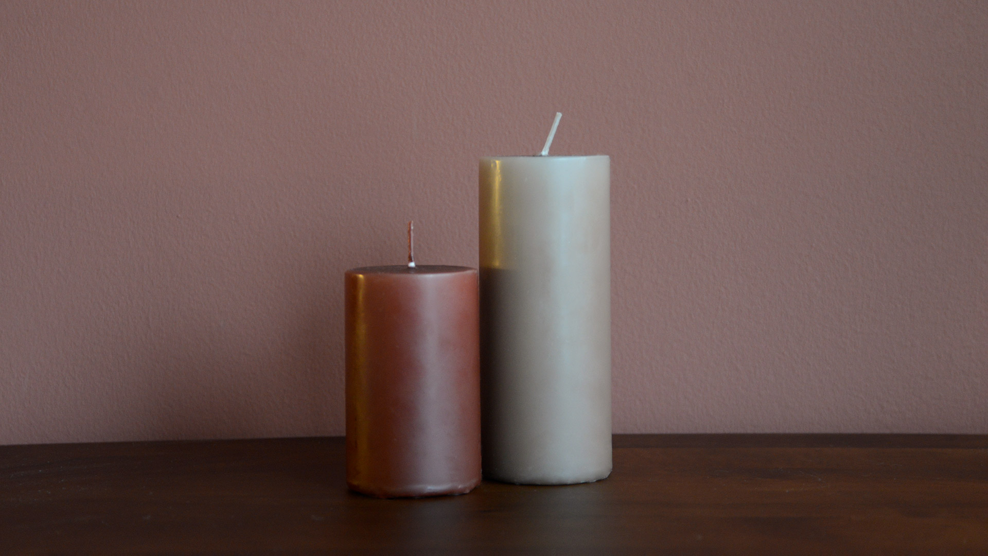 The perfect match to a stylish candleholder, this set of two pillar candles are an easy addition to a gift, or a treat for yourself. Set includes one of each candle pictures – 1x shorter red pillar candle and 1x taller mink pillar candle. Further information, including dimensions, can be found below.