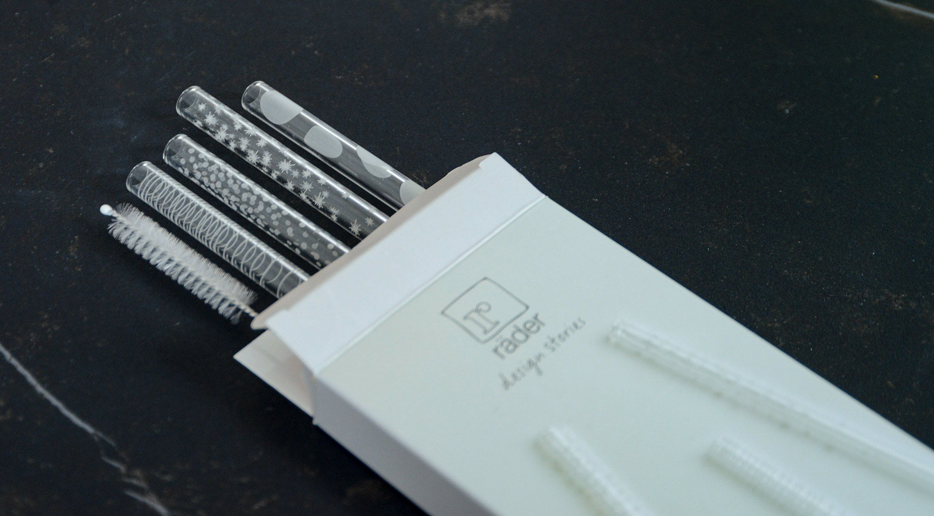 The set includes four glass straws and one cleaning brush.