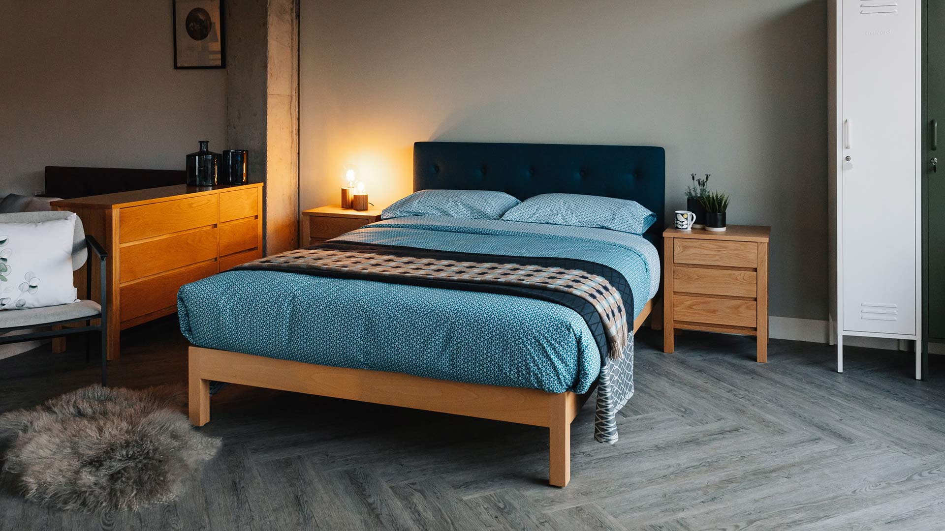 Our Shaker collection will work well with any of the solid oak beds in our collection. However, we think it looks particularly good with our Malabar, Zanskar and Sahara beds.