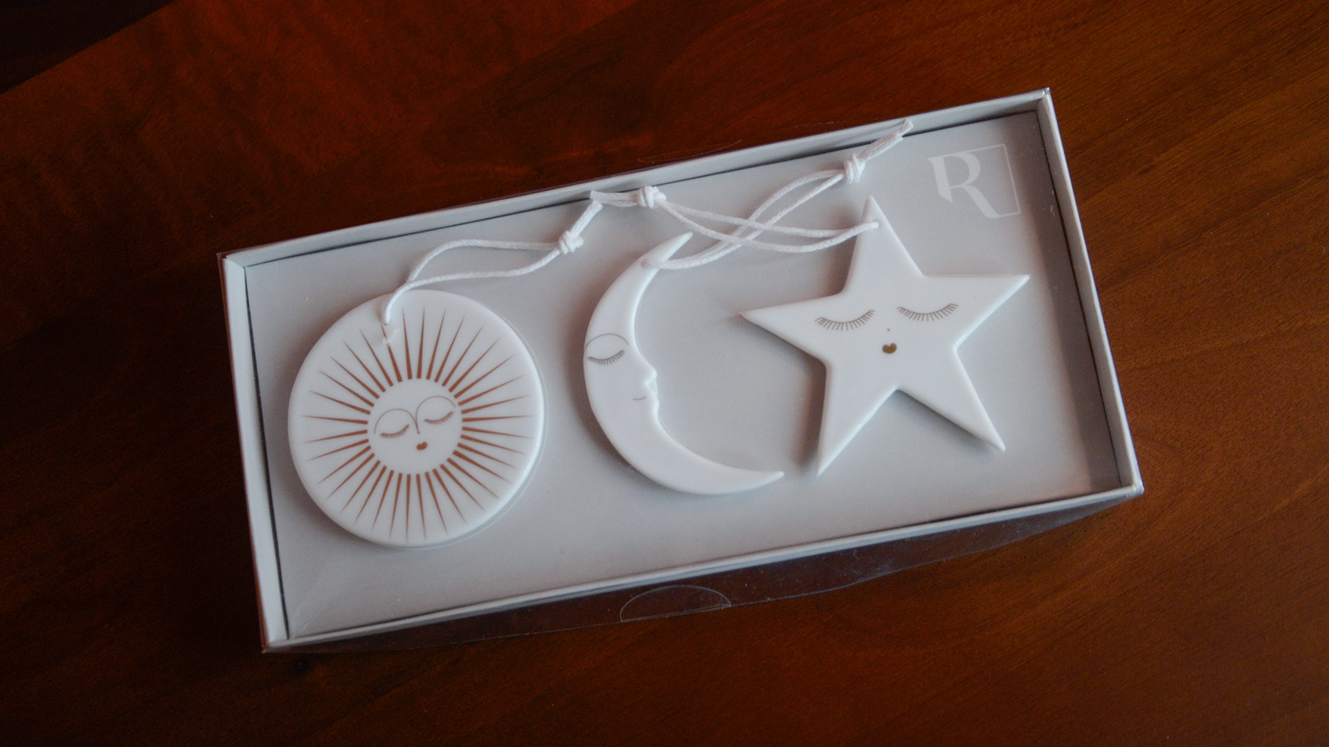 Set includes 3x shaped porcelain characters – a moon, a sun and a star.
