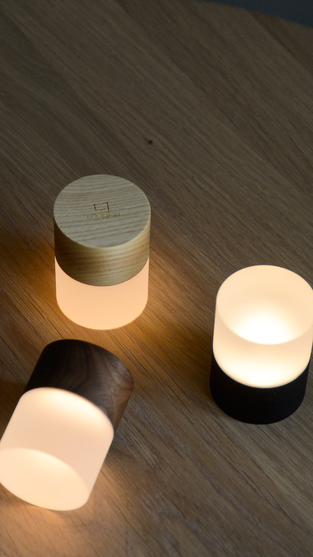 Ideal for adding detail to bookcases or shelves, or as a sweet little night light. Available in ash, walnut or black wood with frosted glass. USB charging cable included, mains adapter required (not included).