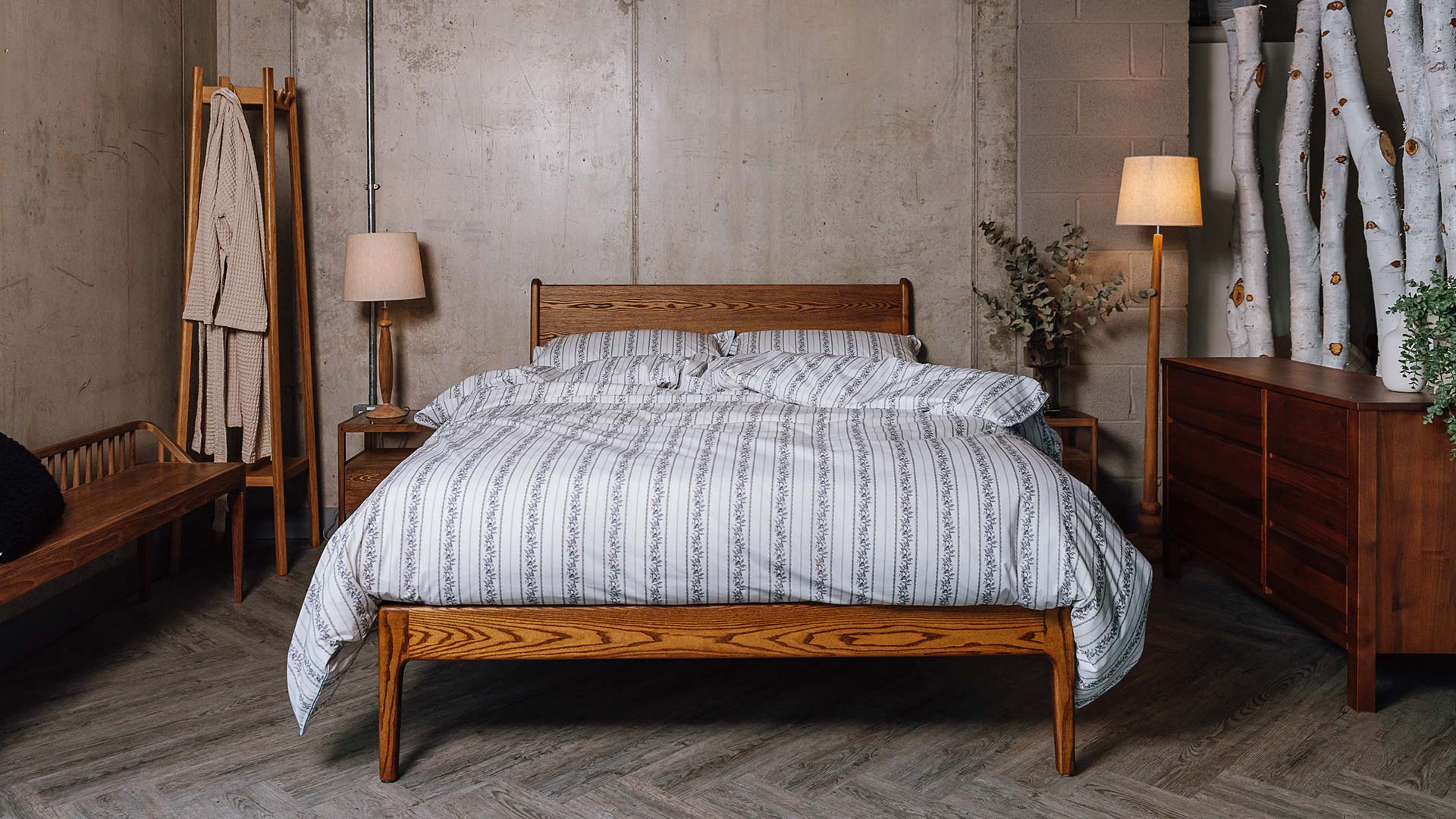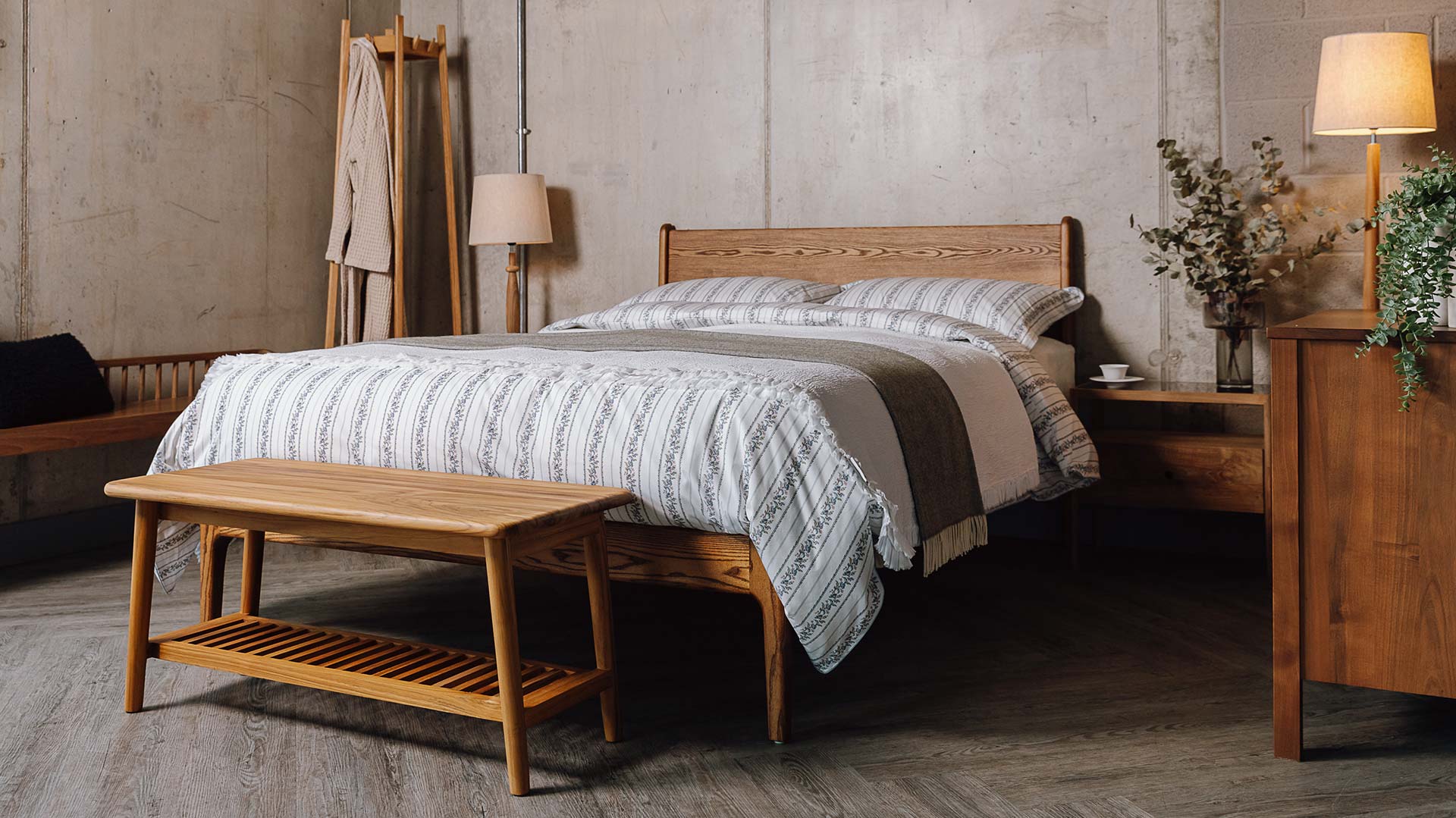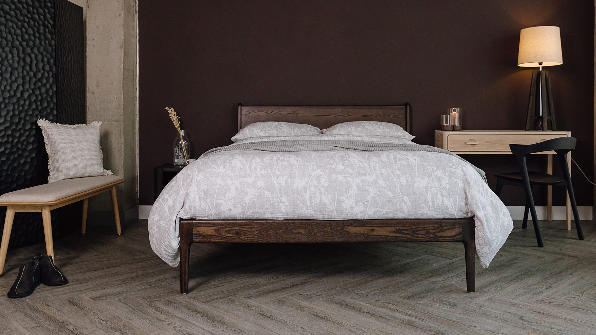 Arguably our most popular bed, the Camden is a classic design featuring a bold panel headboard, expertly crafted from your choice of solid wood timber. Complimented by the elegant curves of the headboard legs and gently softened edges. Available here in a special edition, Smoked Ash finish – in a choice of two tones:
