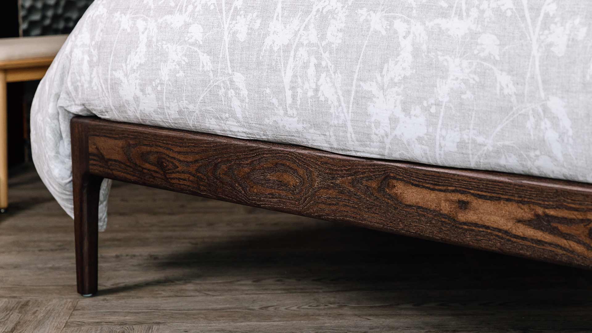 Our smoked ash beds are finished in a chocolate brown coloured lacquer in a choice of two hues laid over natural, sustainably sourced ash timber. Ash is a very varied, timber with a lot of contrast and a bold dramatic grain. These unique smoked stains give it a rich deep brown colour, but still allows the patterns, stripes and swirls of the natural grain to show through. The ideal combination.