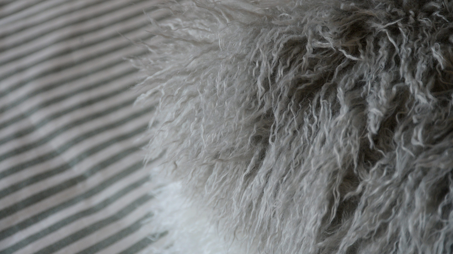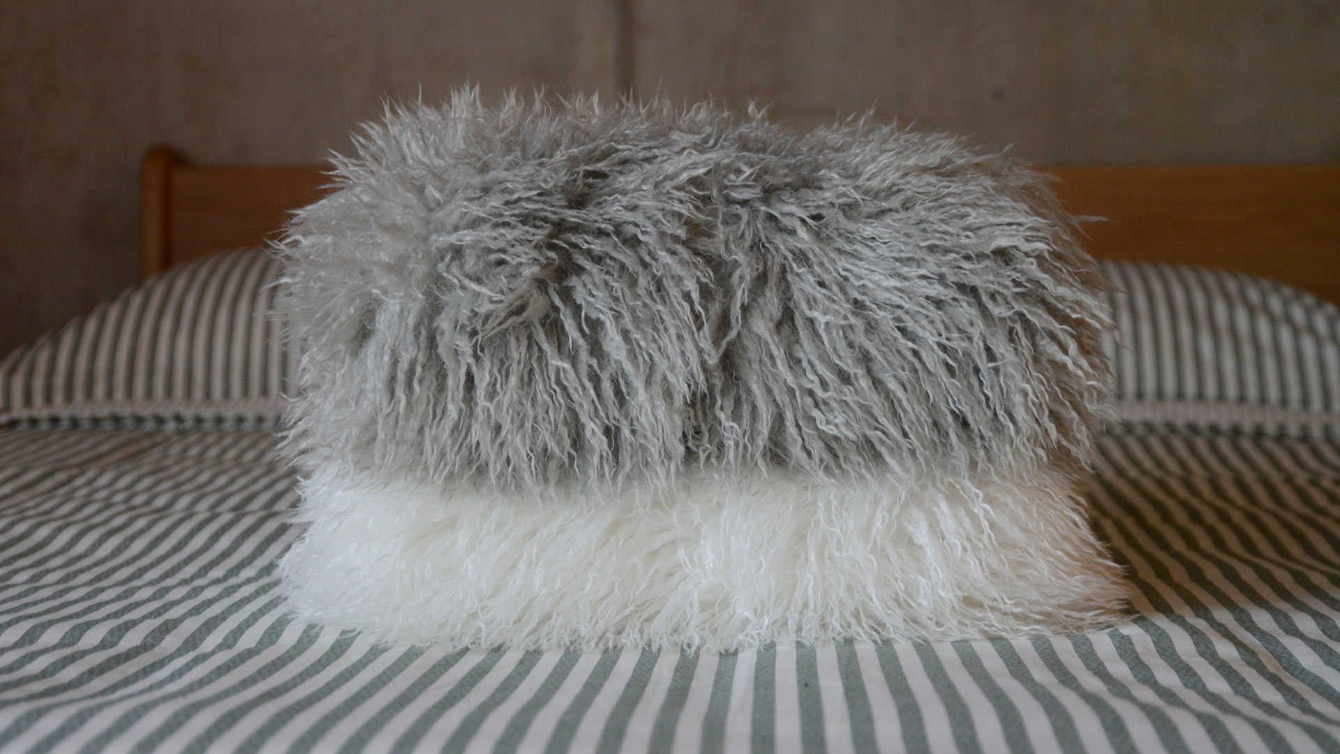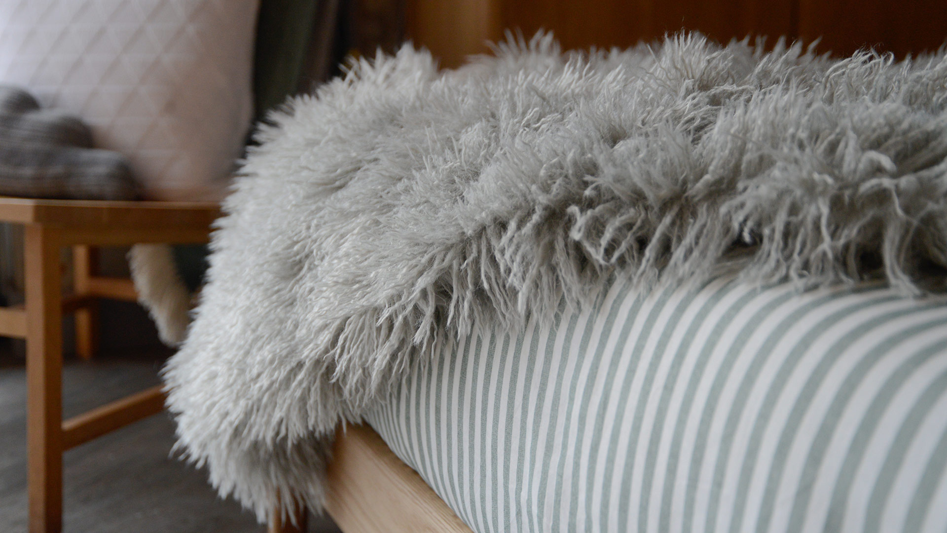 The reverse is in a short pile faux fur fabric in a matching colour.