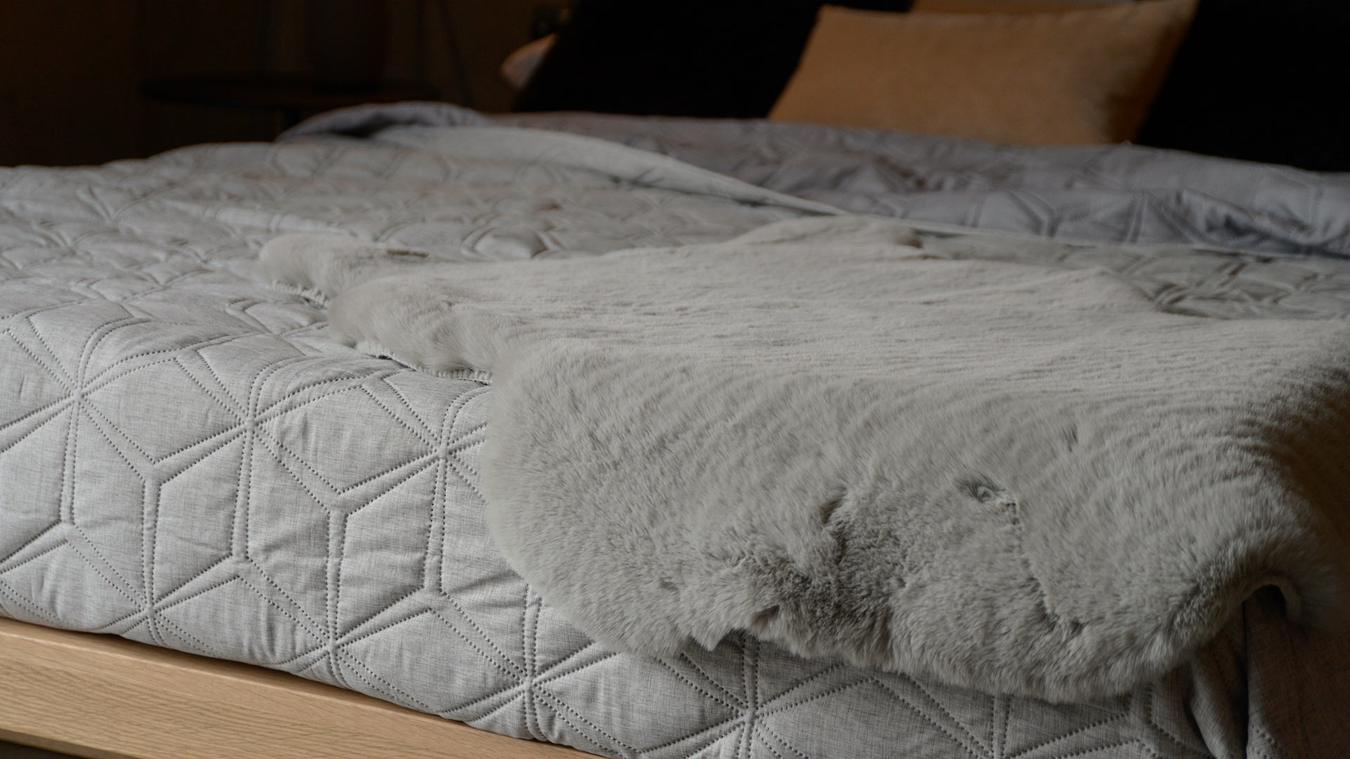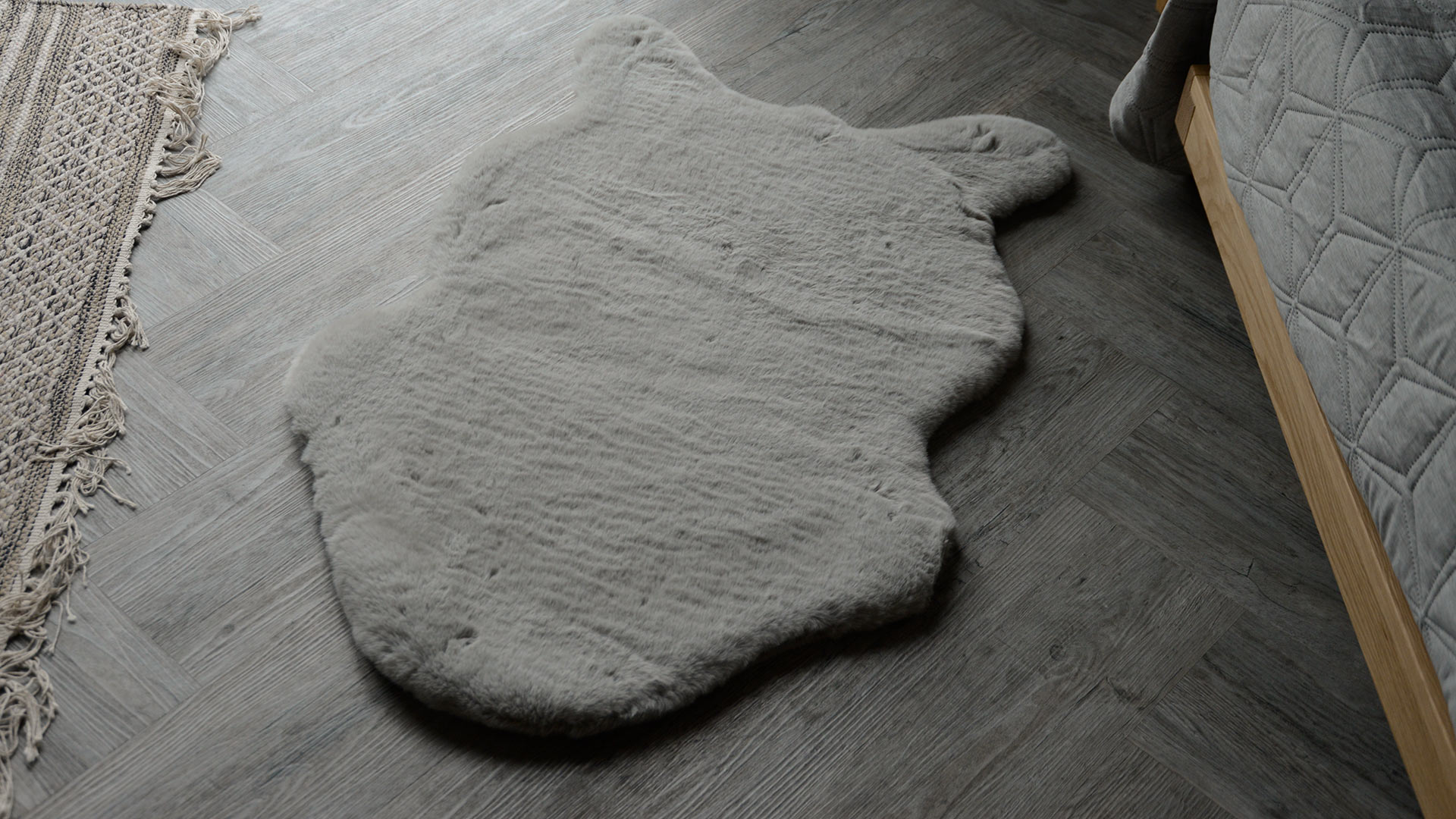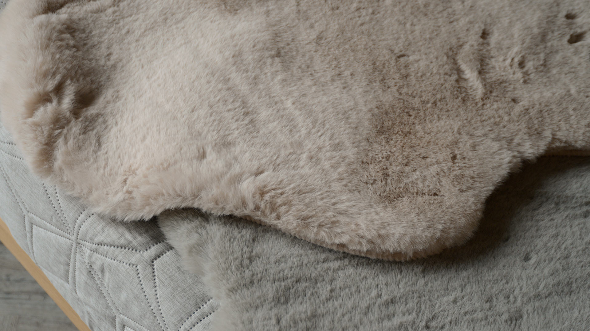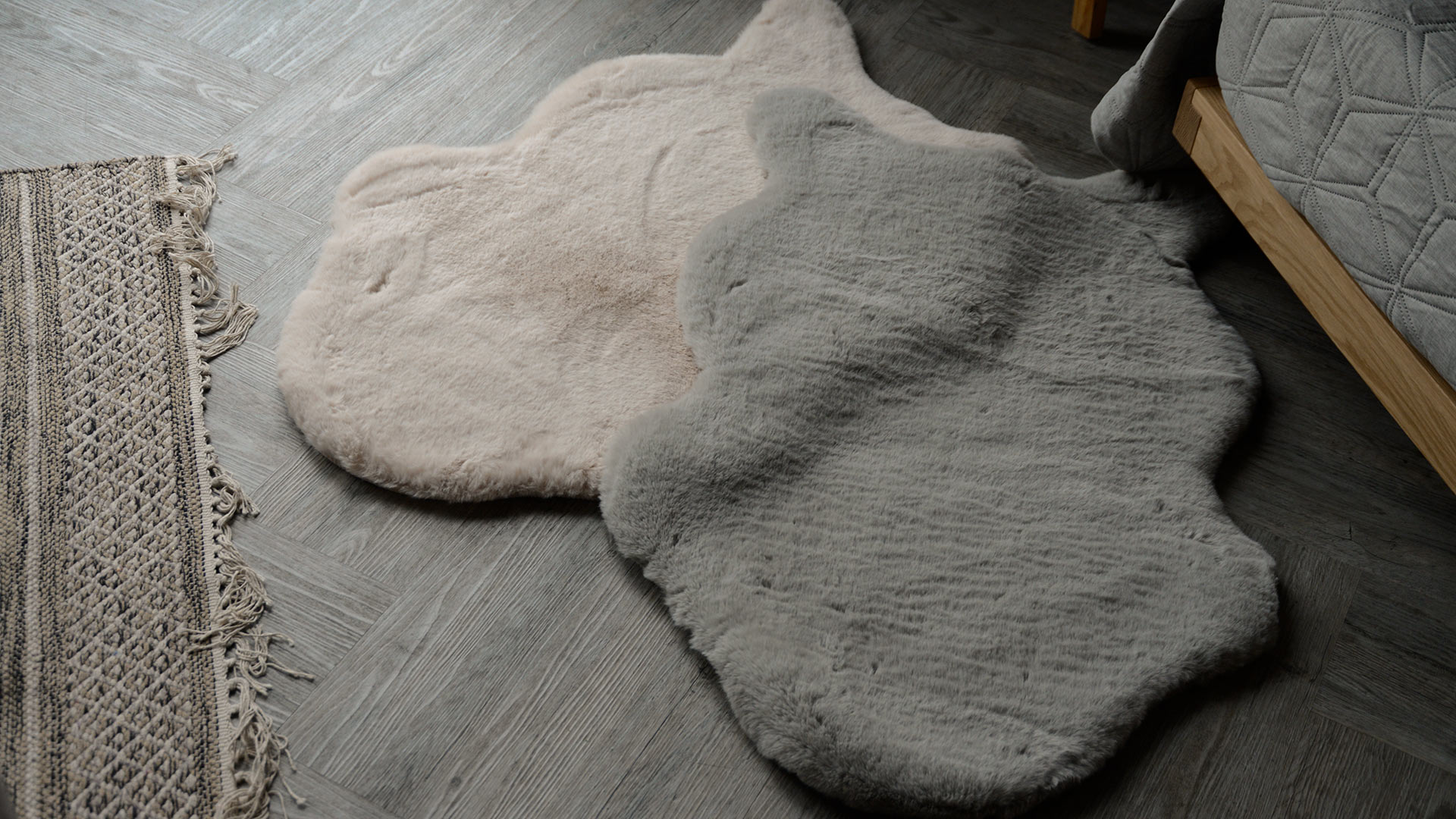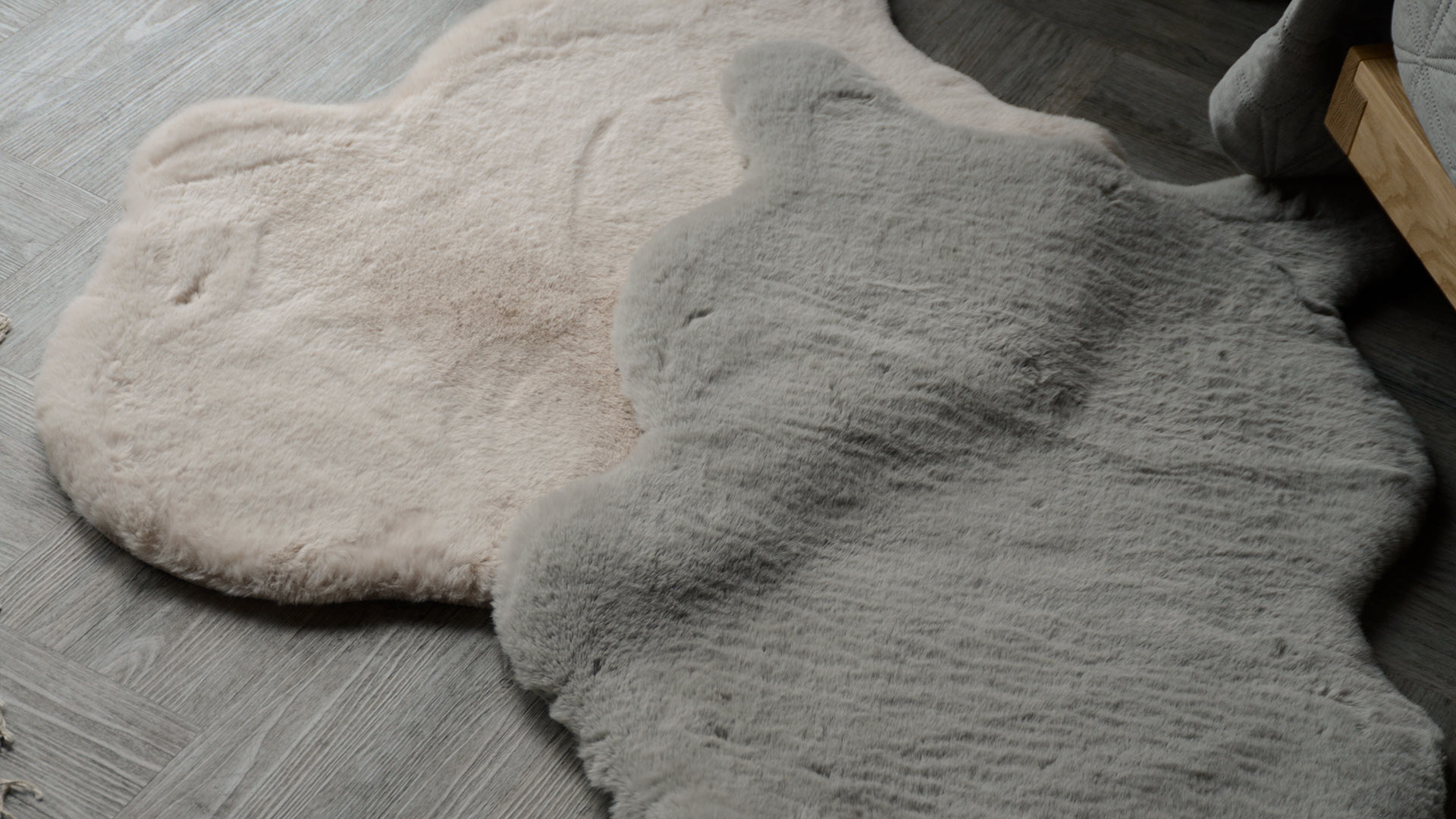 A luxuriously soft, faux fur rug or throw, available in two colour-ways: Cool Grey and Light Sand. Perfect for use on the floor, or over the end of your bed or sofa.