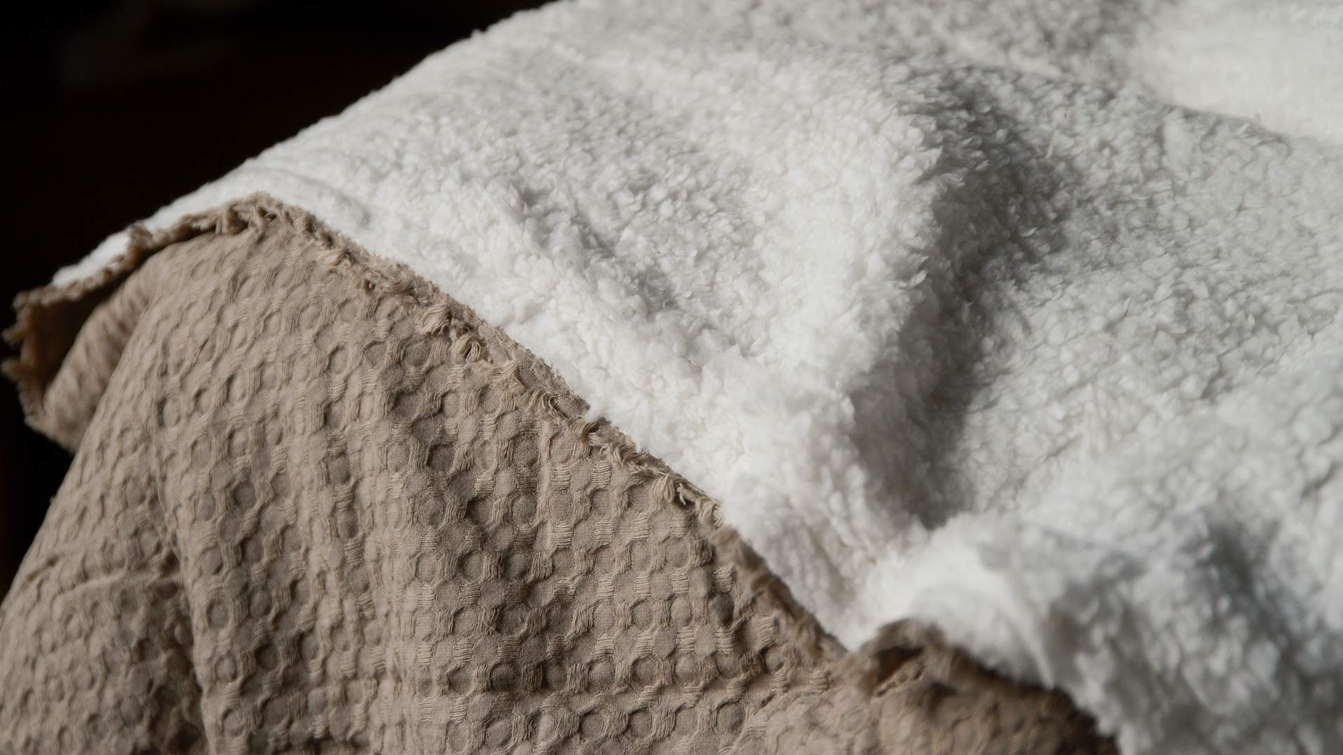 A combination of textured waffle cotton and super soft sherpa fleece. These throws are perfect for cuddling up on the sofa, wrapping up on a cool night in the garden or as an extra layer in winter.