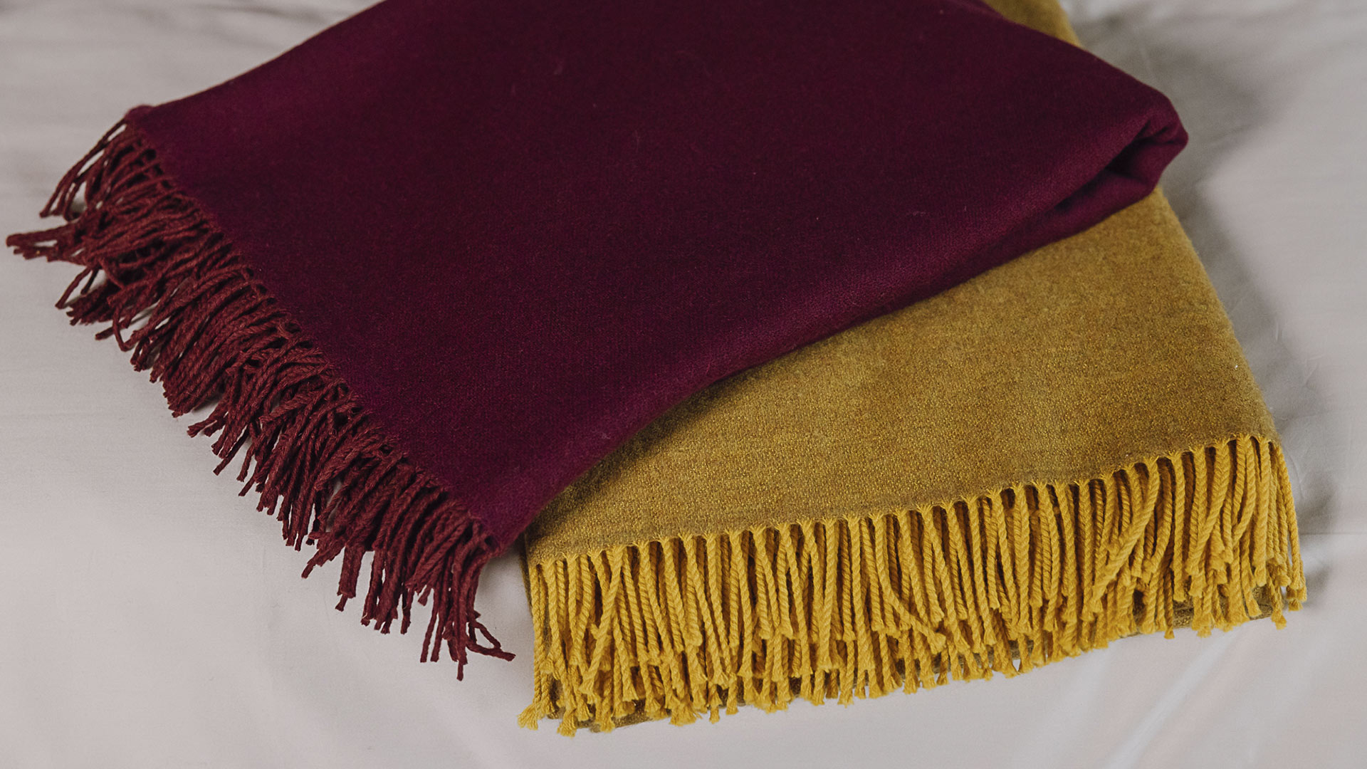 Cosy and luxuriously soft, these merino lambswool blankets are available in three colour options.