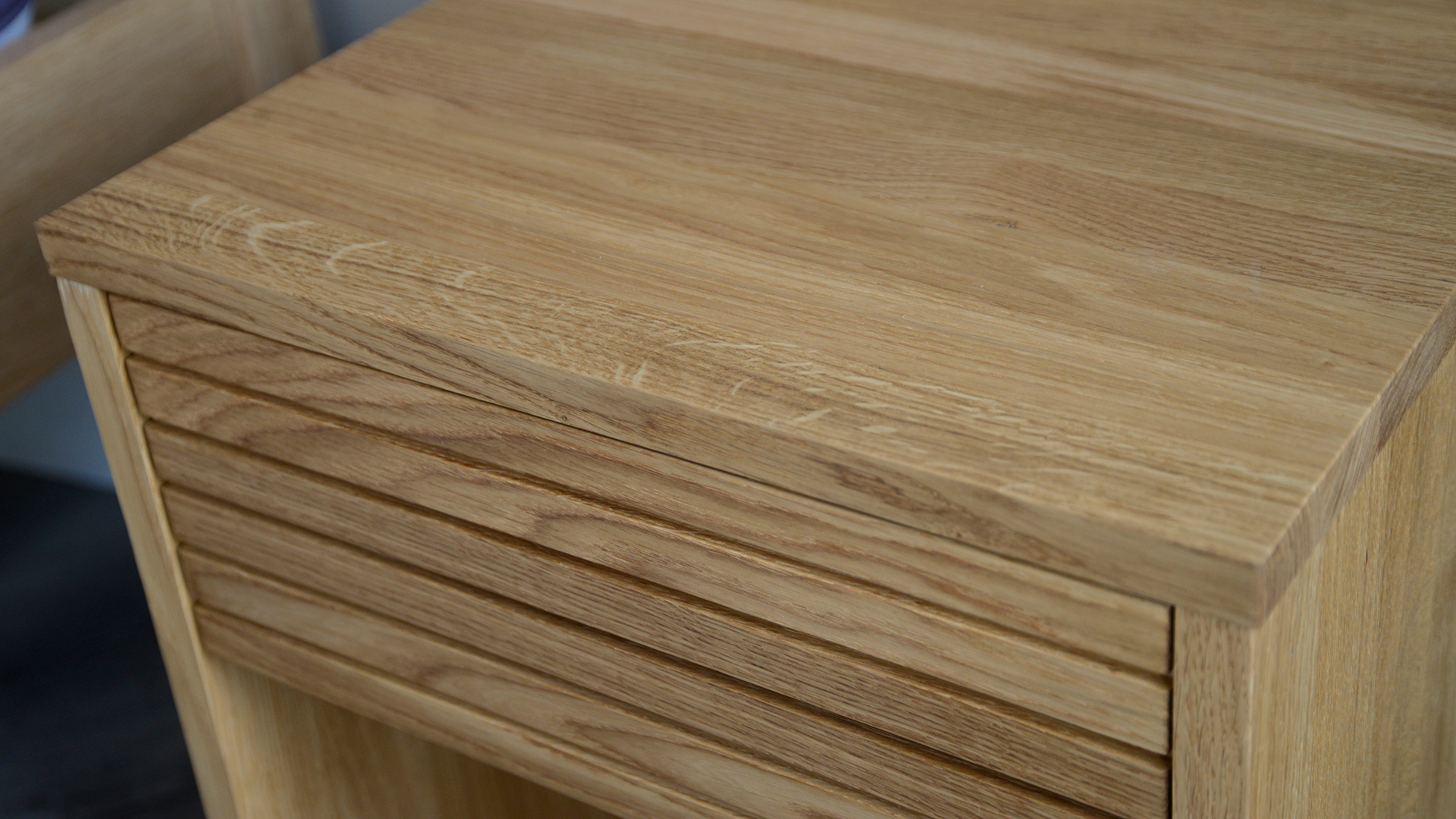Made from solid oak with an oiled finish, this 1 drawer unit is slightly darker in tone than our own oak timber. However, as oak naturally warms and deepens over time, we feel these will make a great match together.