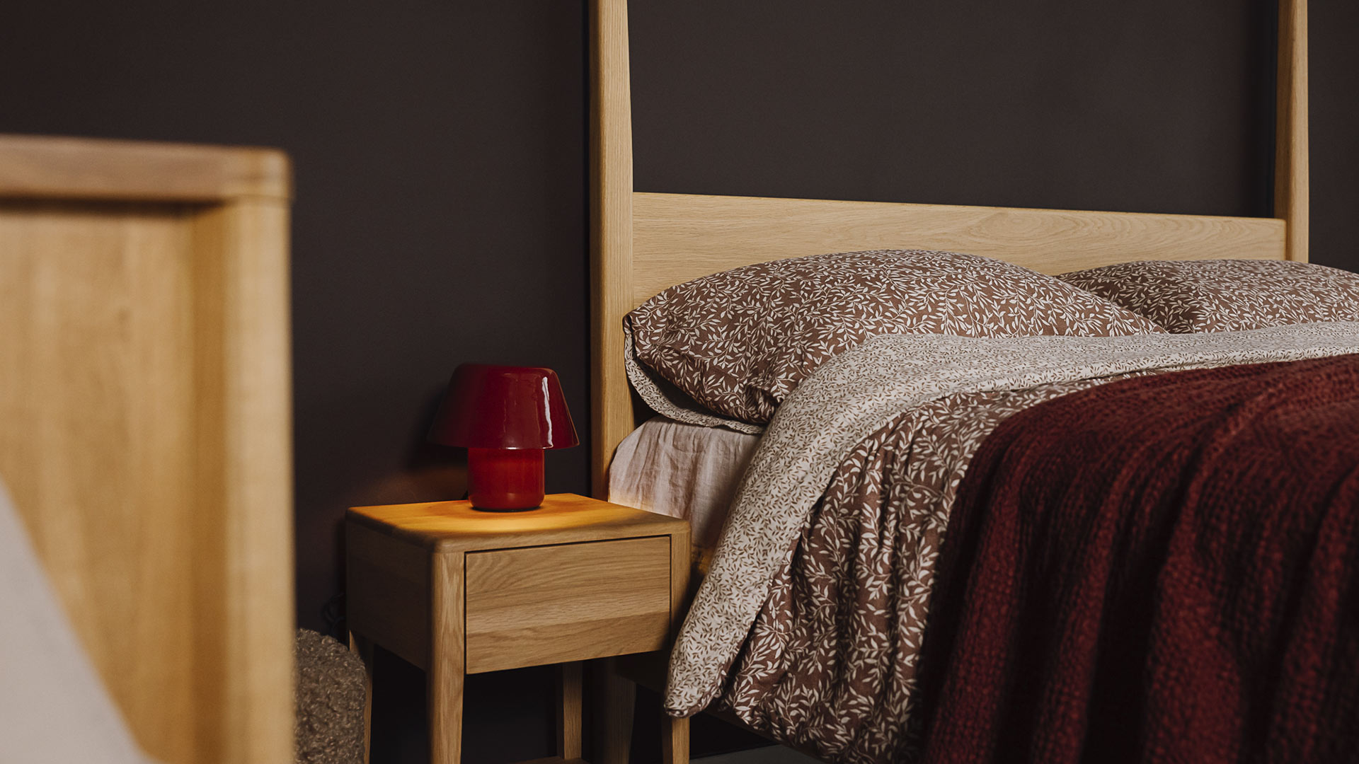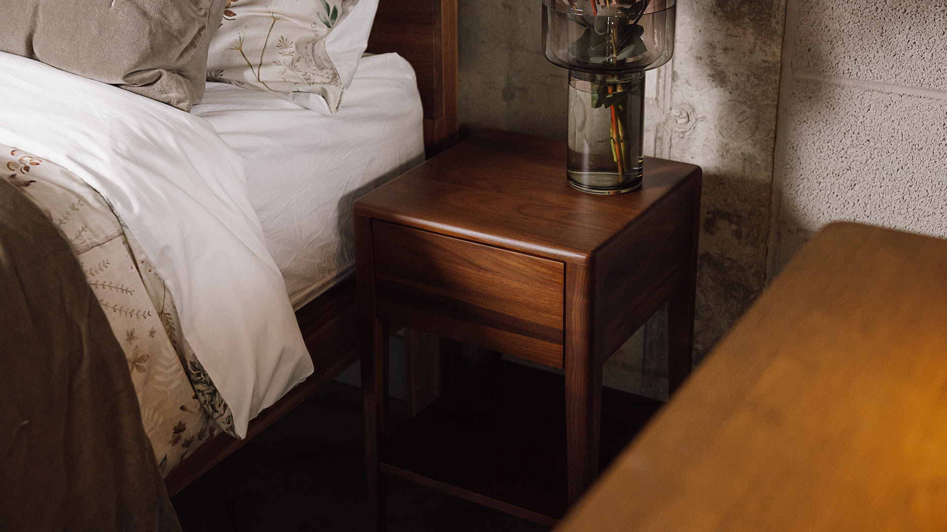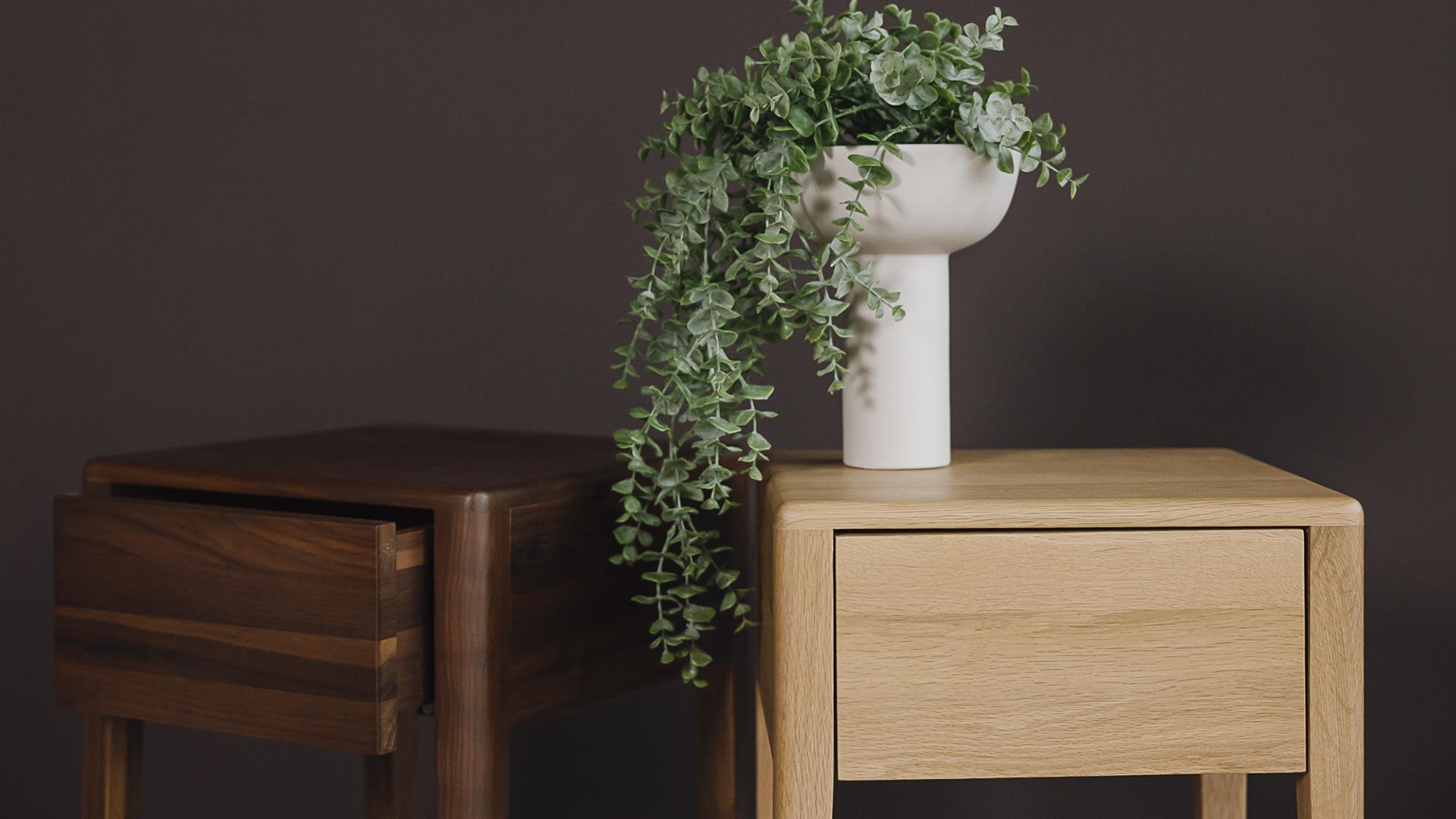 With a subtle mid-century inspired design, these spindle two tier nightstands are simple and stylish. The gently rounded, softened edges give a calming, gentle look, whilst the drawer to the top of the stand offers a good amount of storage. Available in either solid oak or walnut with a soft matte finish.