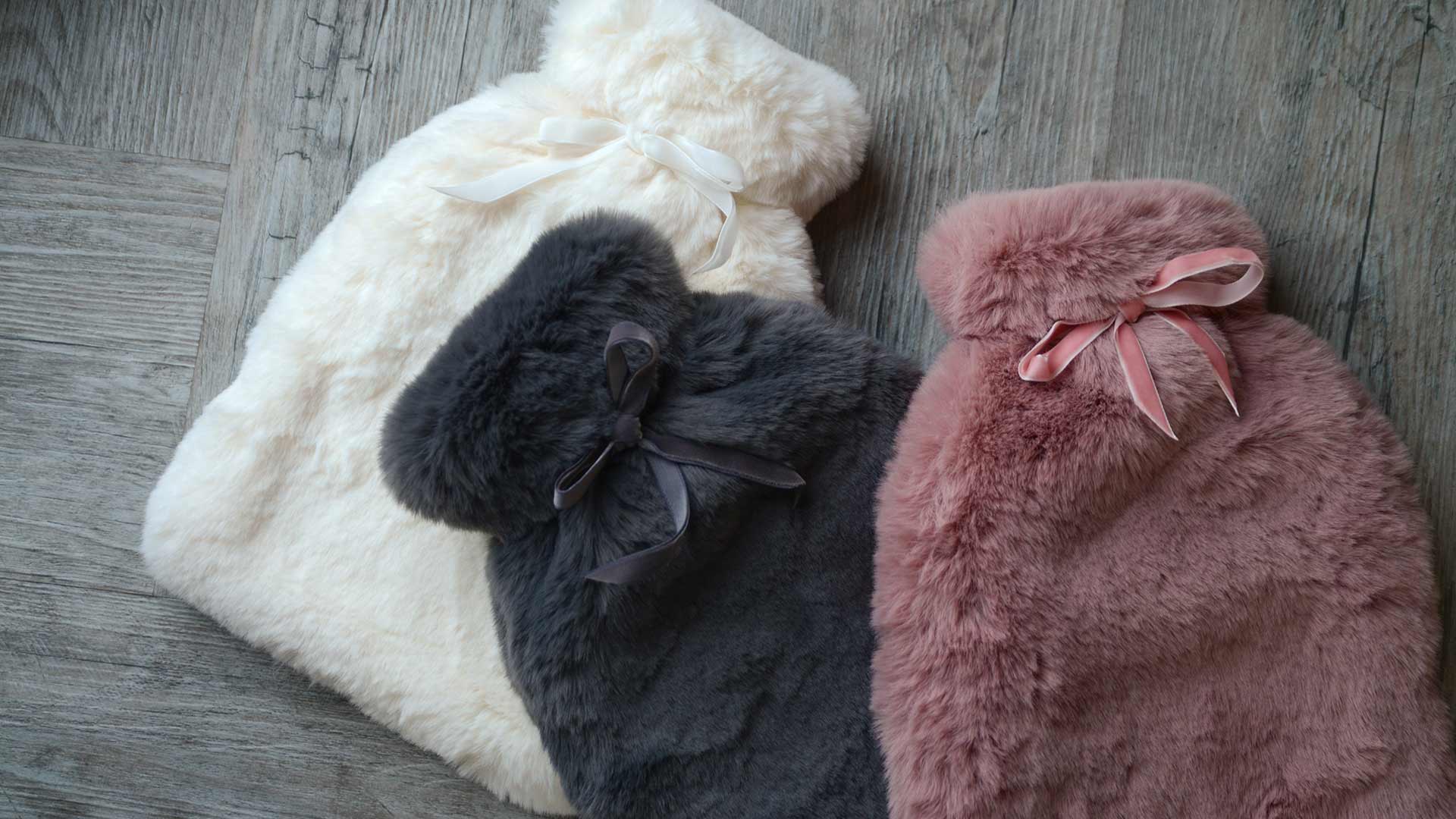 Keep cosy and warm this winter with this hot water bottle in a luxury faux fur cover. Super soft faux fur covers in charcoal, pink or ivory with matching ribbon detail and velcro fastener. Complete with satin gift bag.