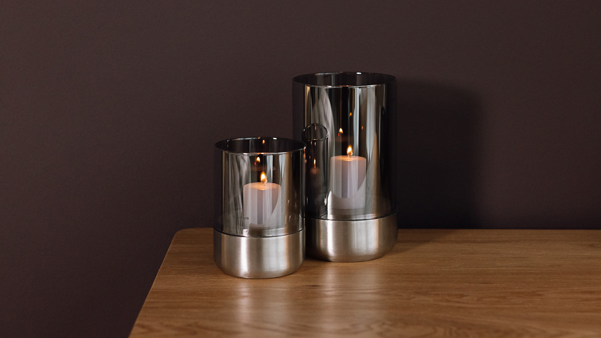 Modern & stylish stainless steel and glass candle holders, with a weighted, stainless steel base and ‘lift-off’ glass top to enable you to easily light your candle. Available in two sizes. More information can be found below.