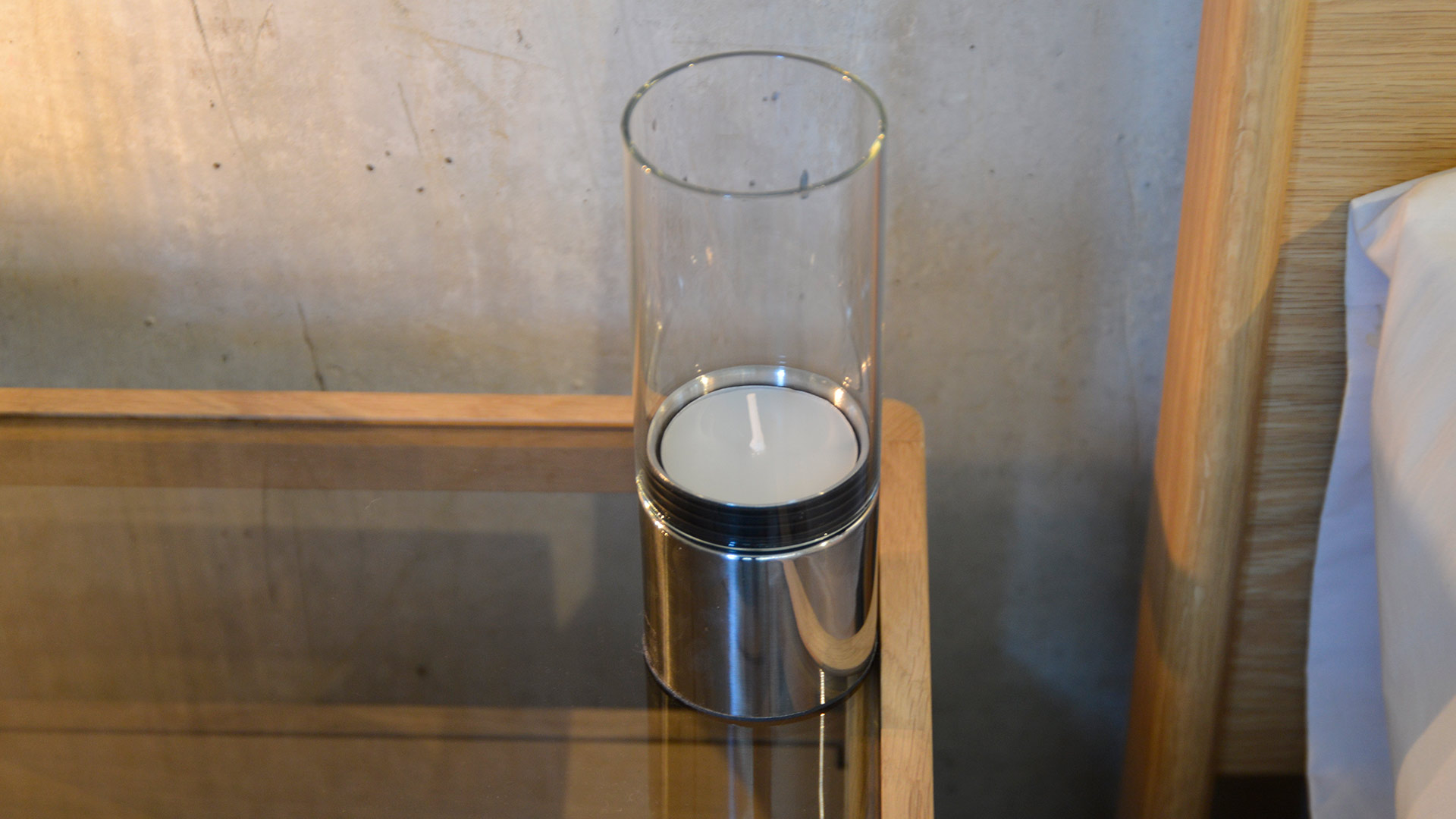 Materials: Stainless steel & glass | Large tea-light candle included