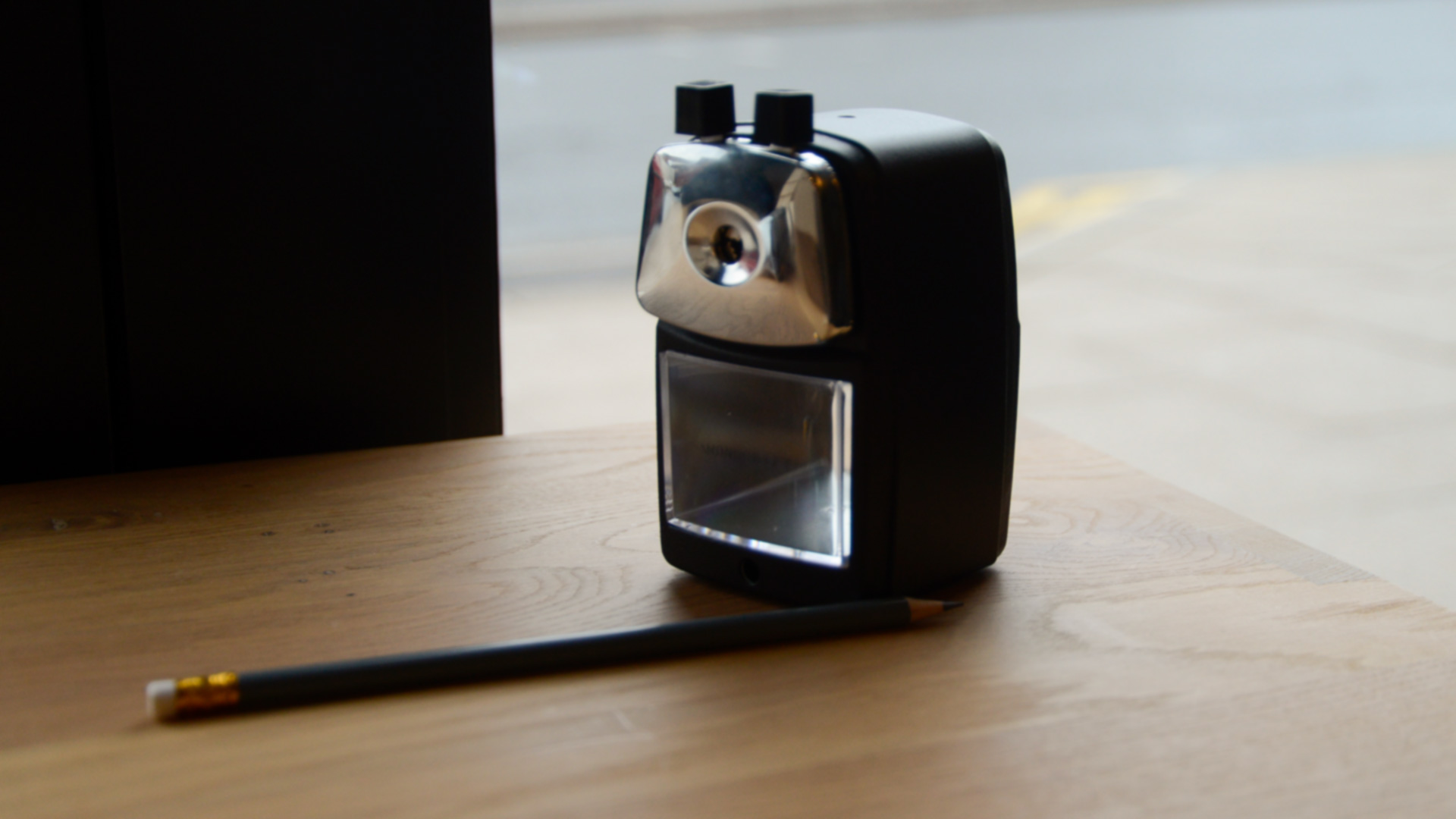 Desk-top pencil sharpener – a classic, black metal sharpener with an attachment to secure it to the desk top.