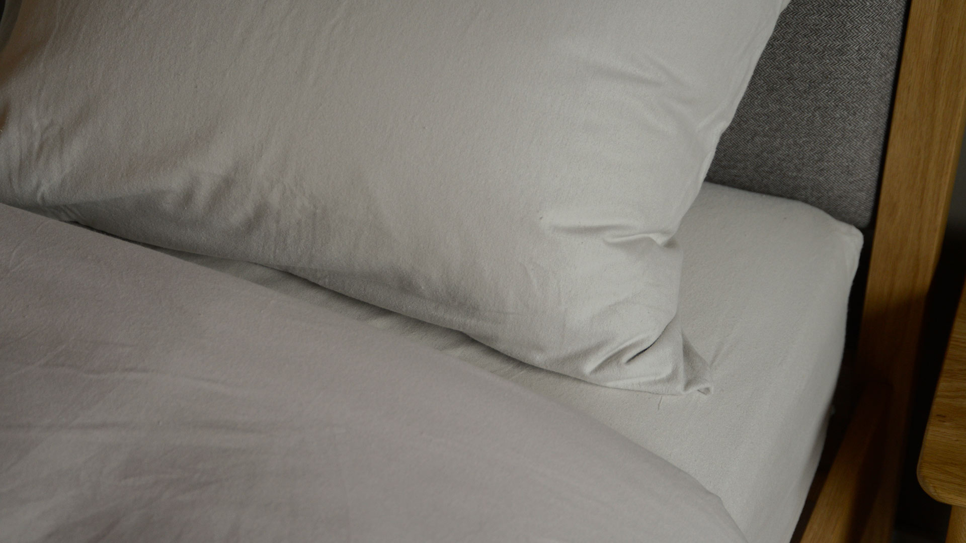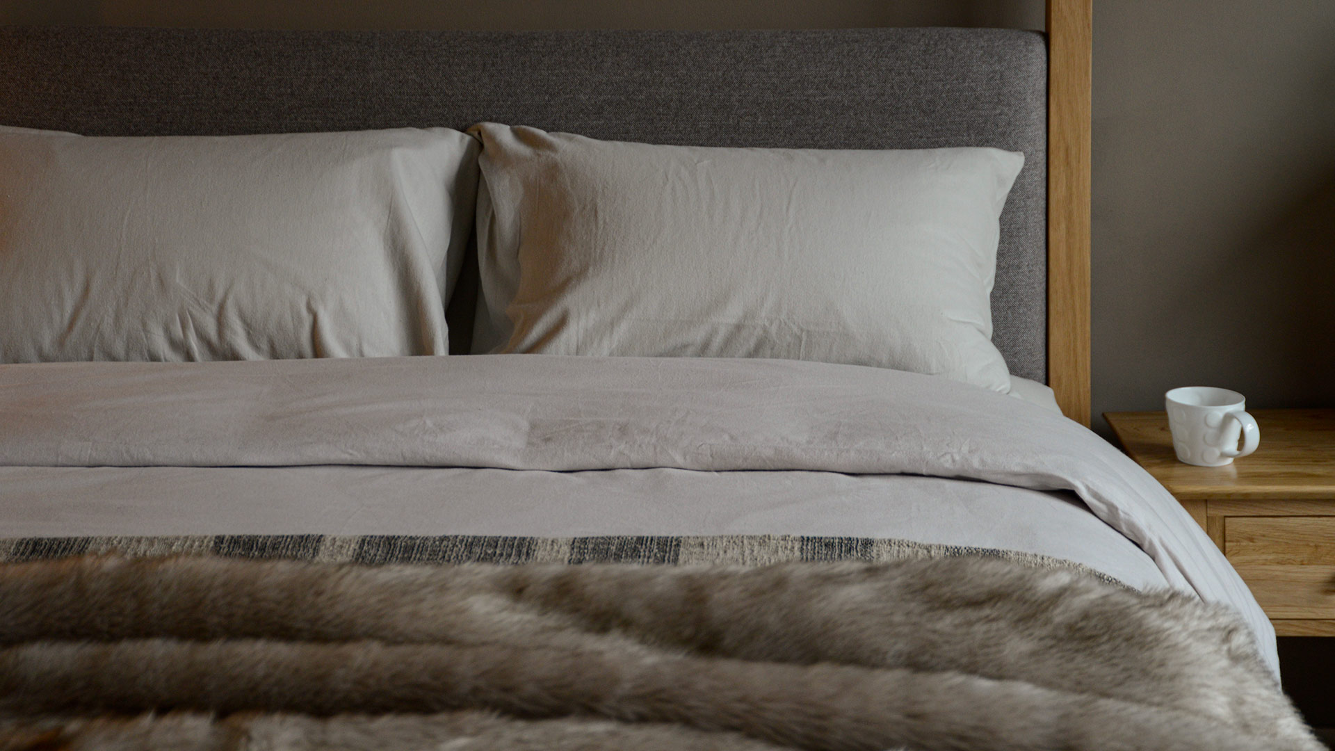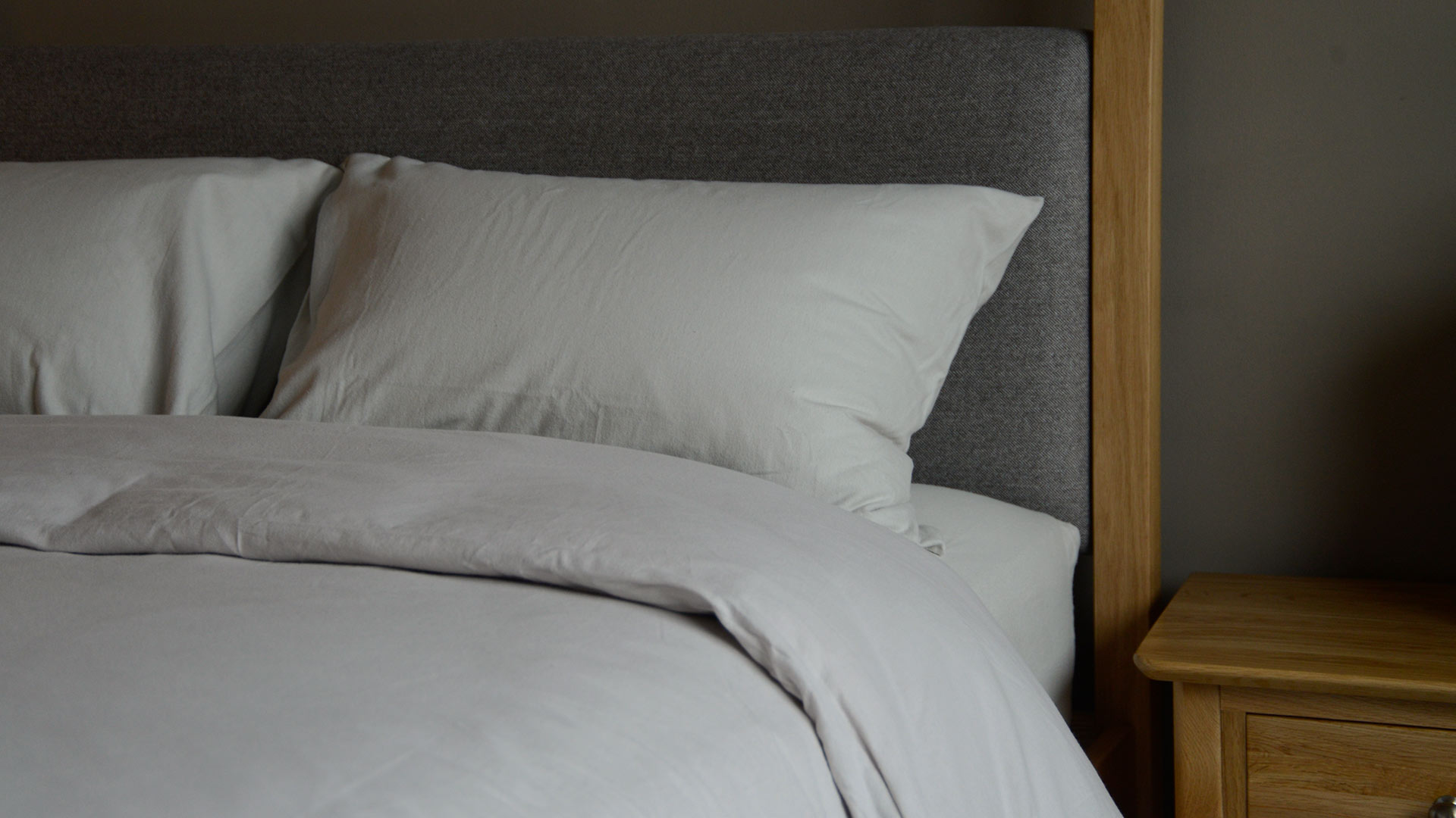 A collection of soft and cosy, stone grey brushed cotton bedding. Fitted sheets, duvet covers and pillowcases in warm and toasty brushed cotton fabric.