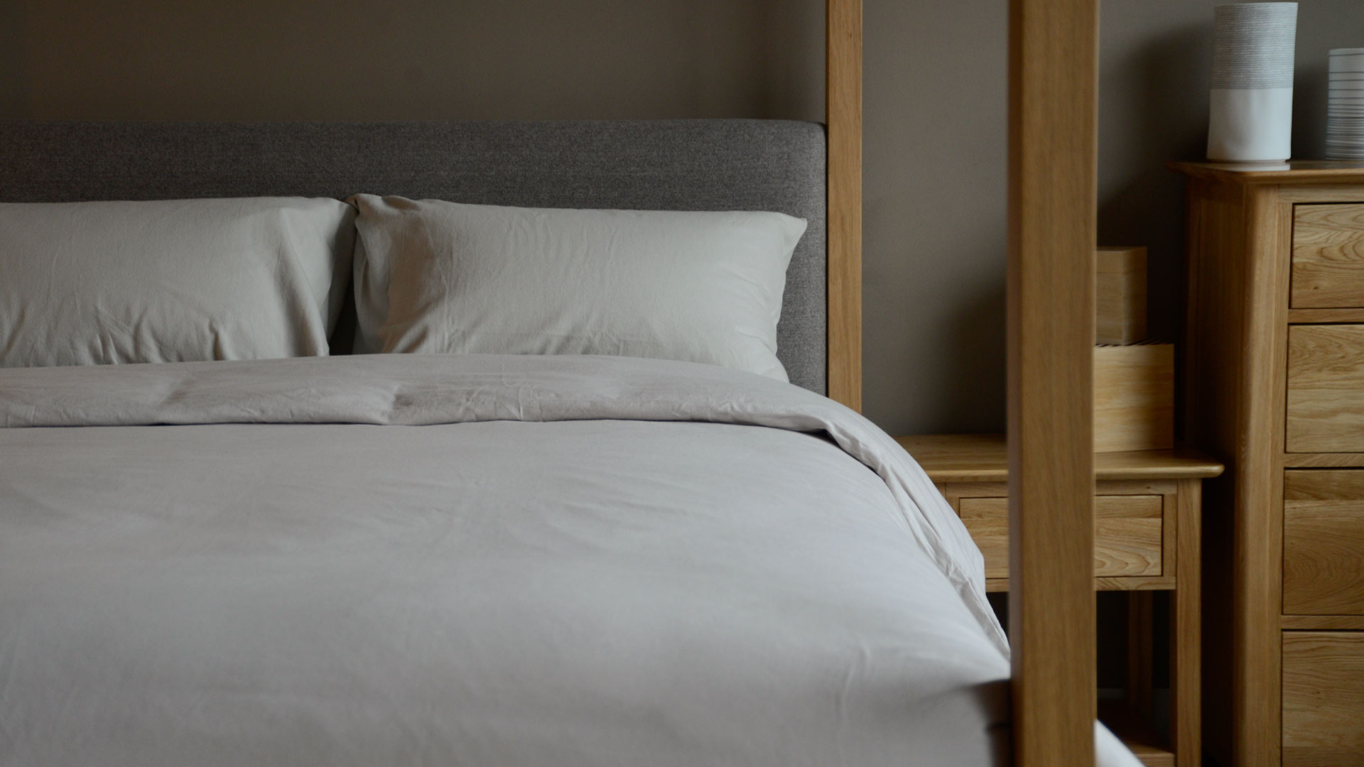 A collection of incredibly soft, brushed cotton sheets, duvet covers and pillowcases in a stone grey colour. Fitted sheets and duvet covers are available in double, king-size and super-king, sets of two pillowcases are also available.