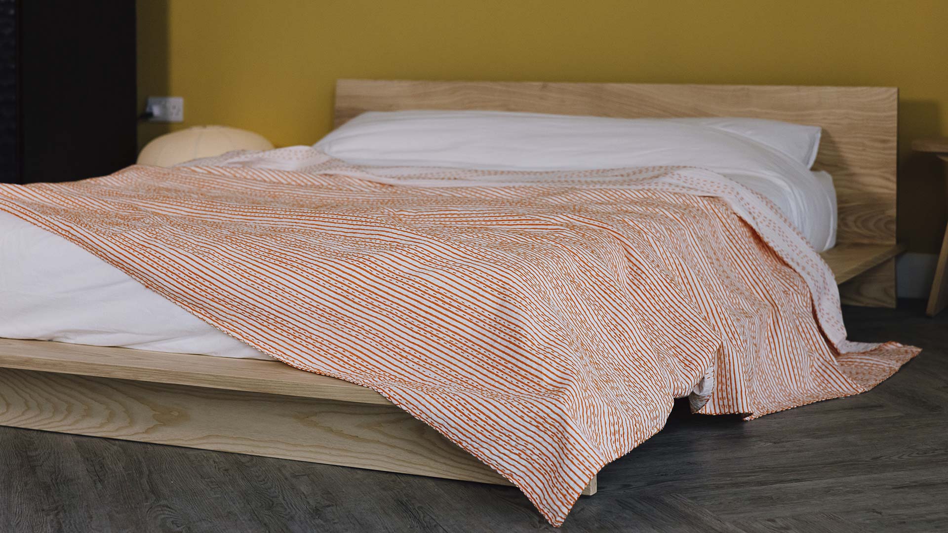 Traditional block print designs with a bold stripe pattern, available in three colour-ways; blue, green and orange. Perfect as lighter bed covers on their own, or layered over a duvet in the colder months. More information can be found below.