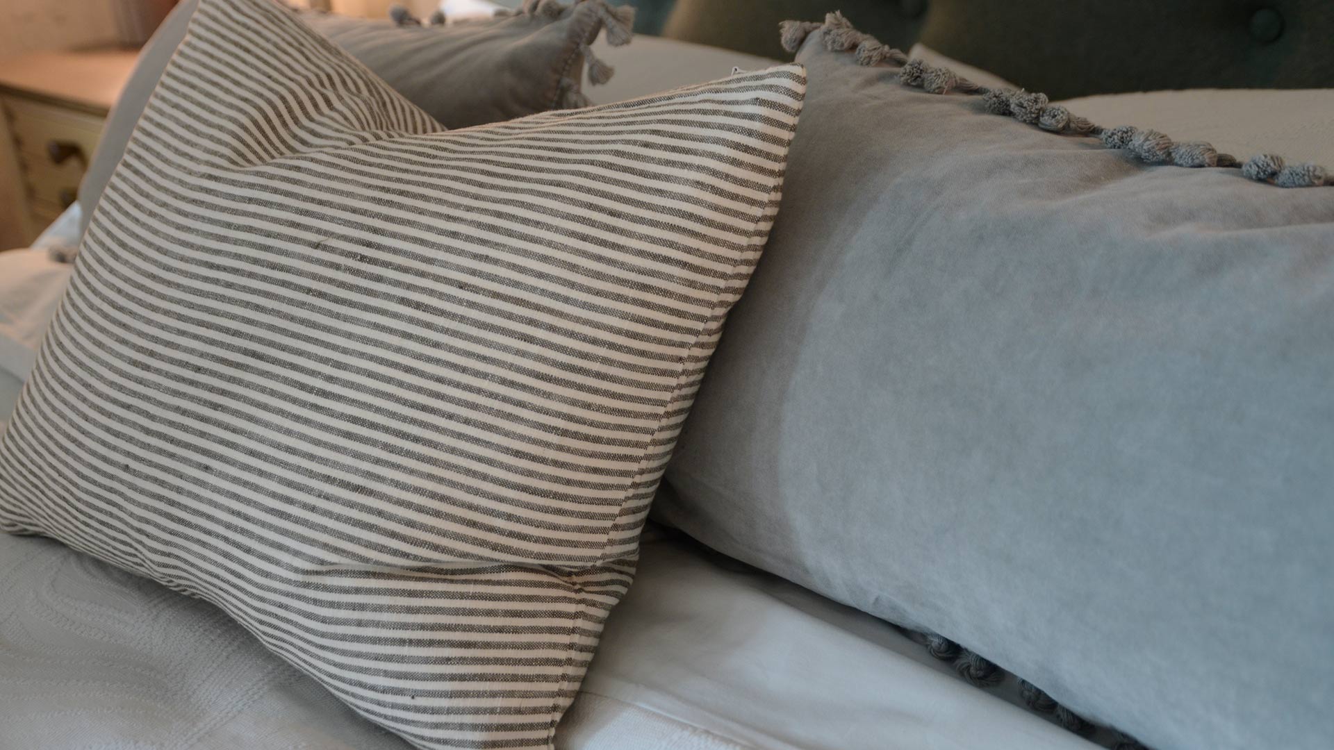 Simple and stylish, these striped linen cushions feature a minimal, classic design. A subtle, contemporary style, they would compliment any modern room design. Perfect as throw cushions either for the bed or sofa. These striped, slubby linen cushions also feature fine stripes in subtle charcoal and ivory to match with almost any colour-scheme.