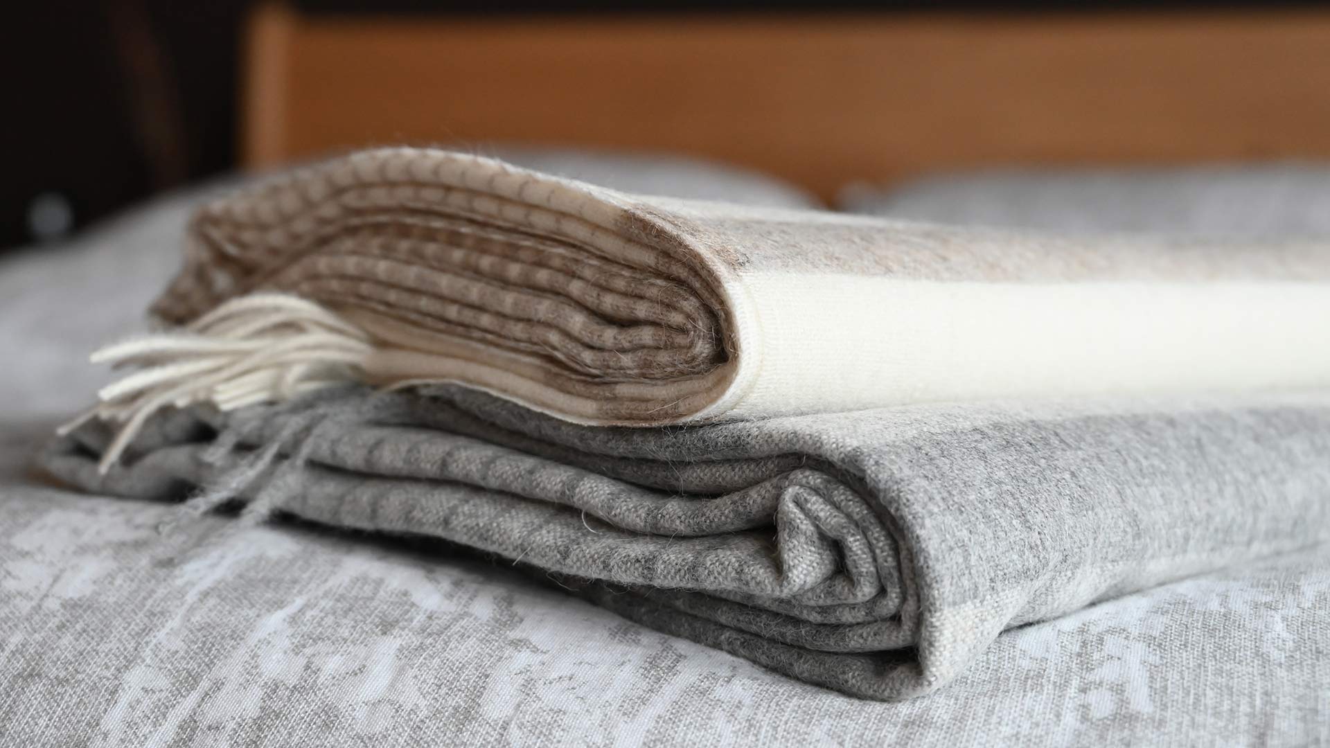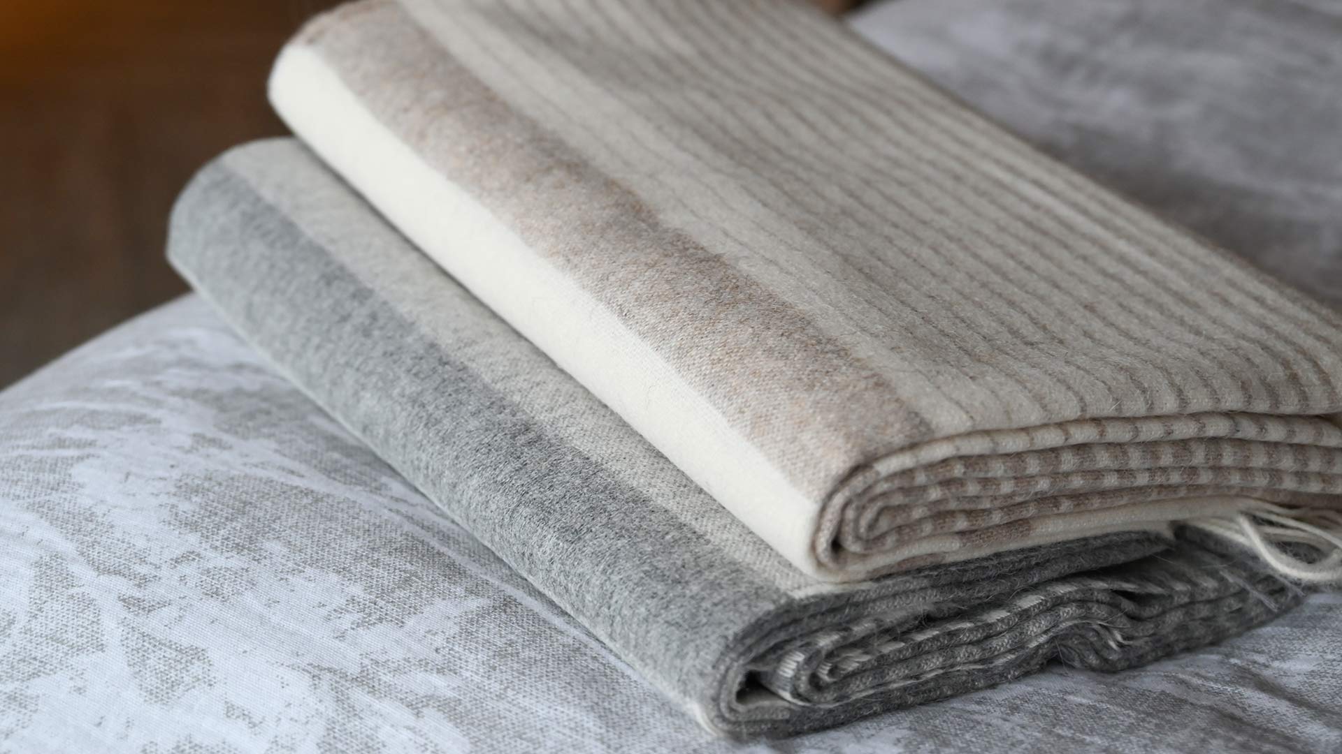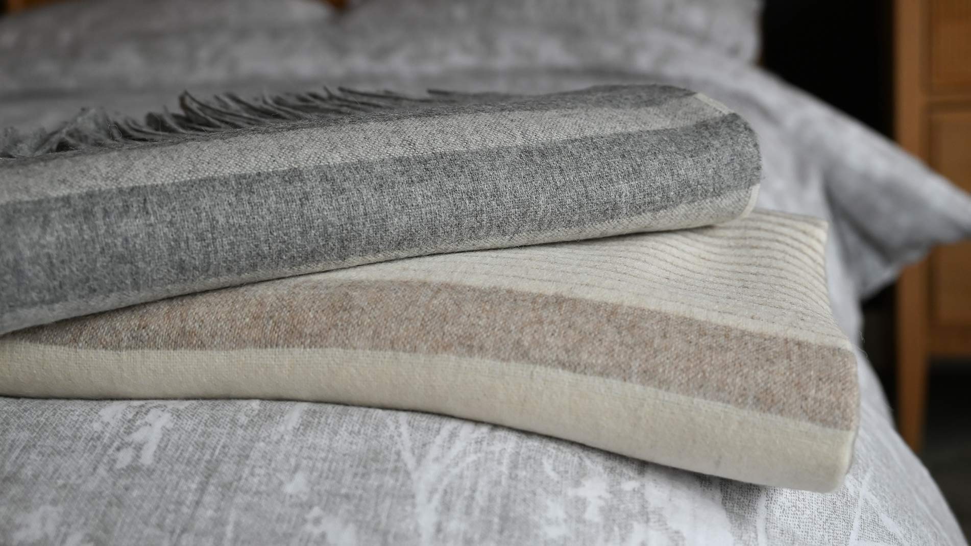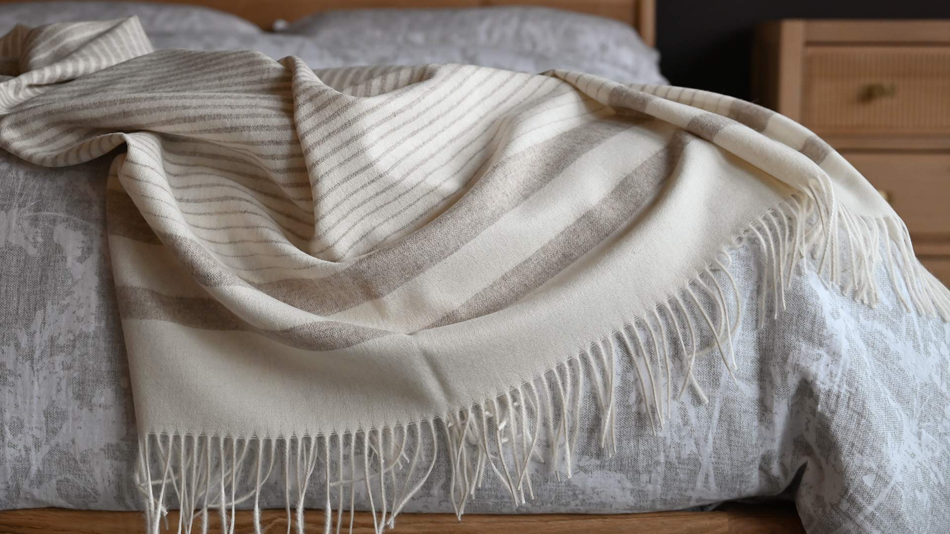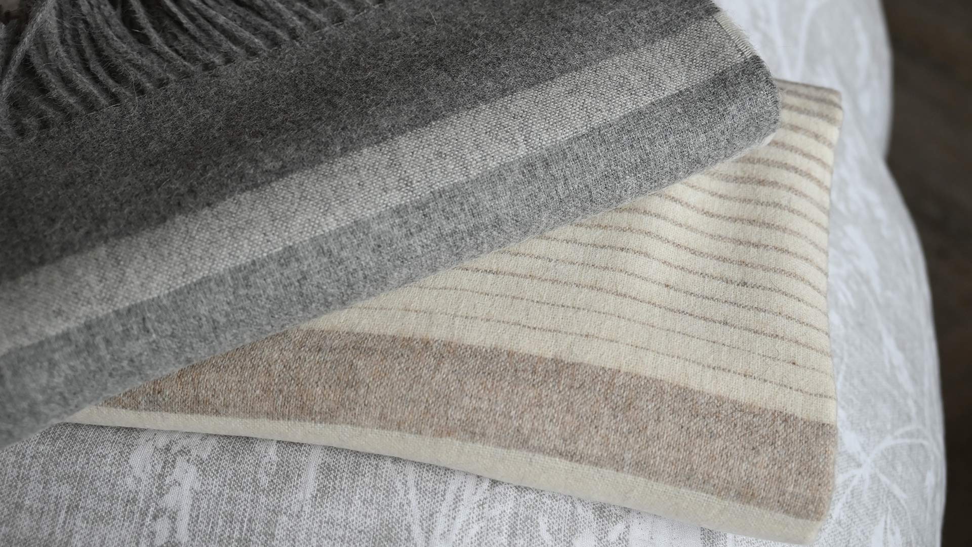 Luxuriously soft wool-blend throws with an easy, relaxed look, featuring a timeless stripe design. Made using 50% recycled alpaca wool and 40% recycled sheep wool.