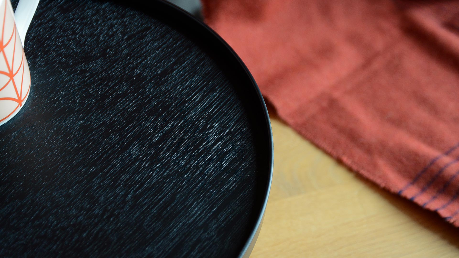 This wooden tray table is varnished with a protective top-coat to repel common substances and liquids, such as coffee, tea and wine. However, the top-coat is not a guarantee against stains – in case of a spill, remove it immediately.