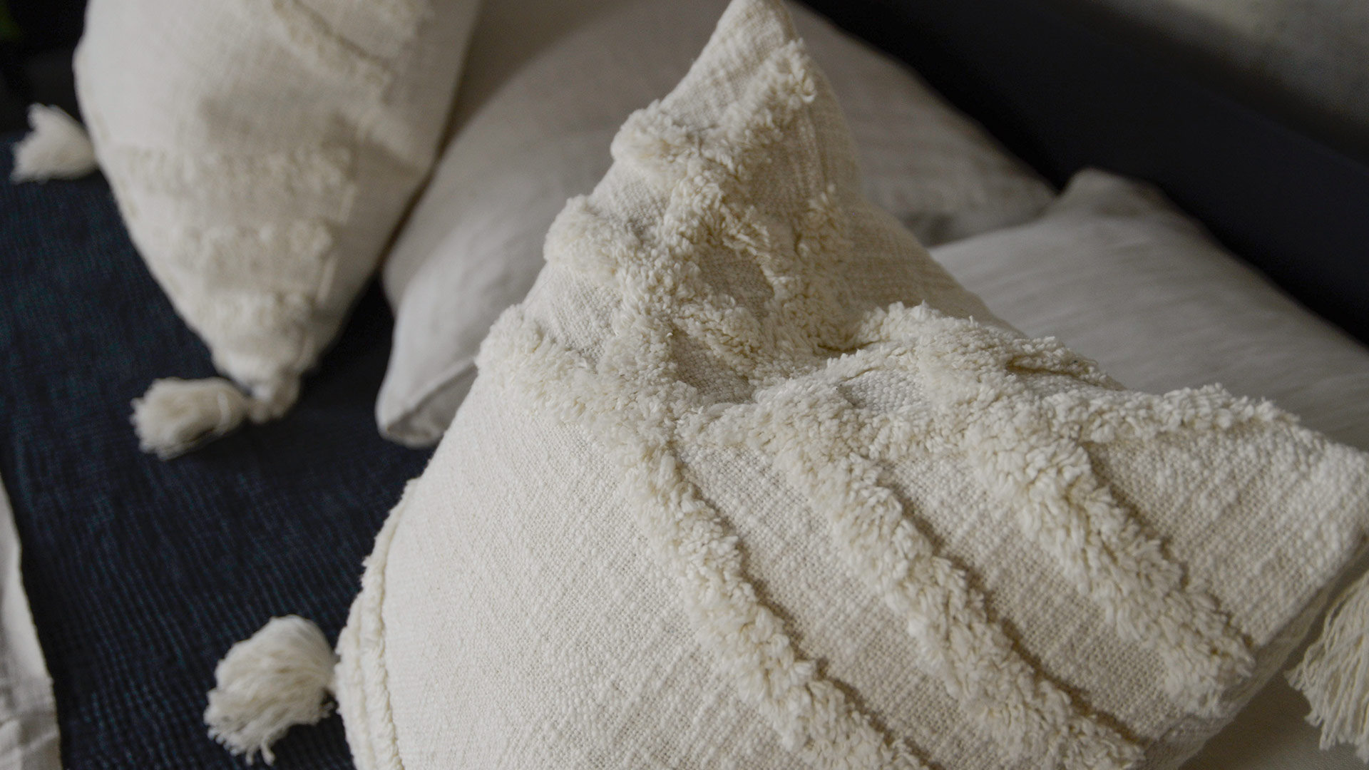 These tasseled tufted cushions are perfect on their own, or paired with other cushions.
