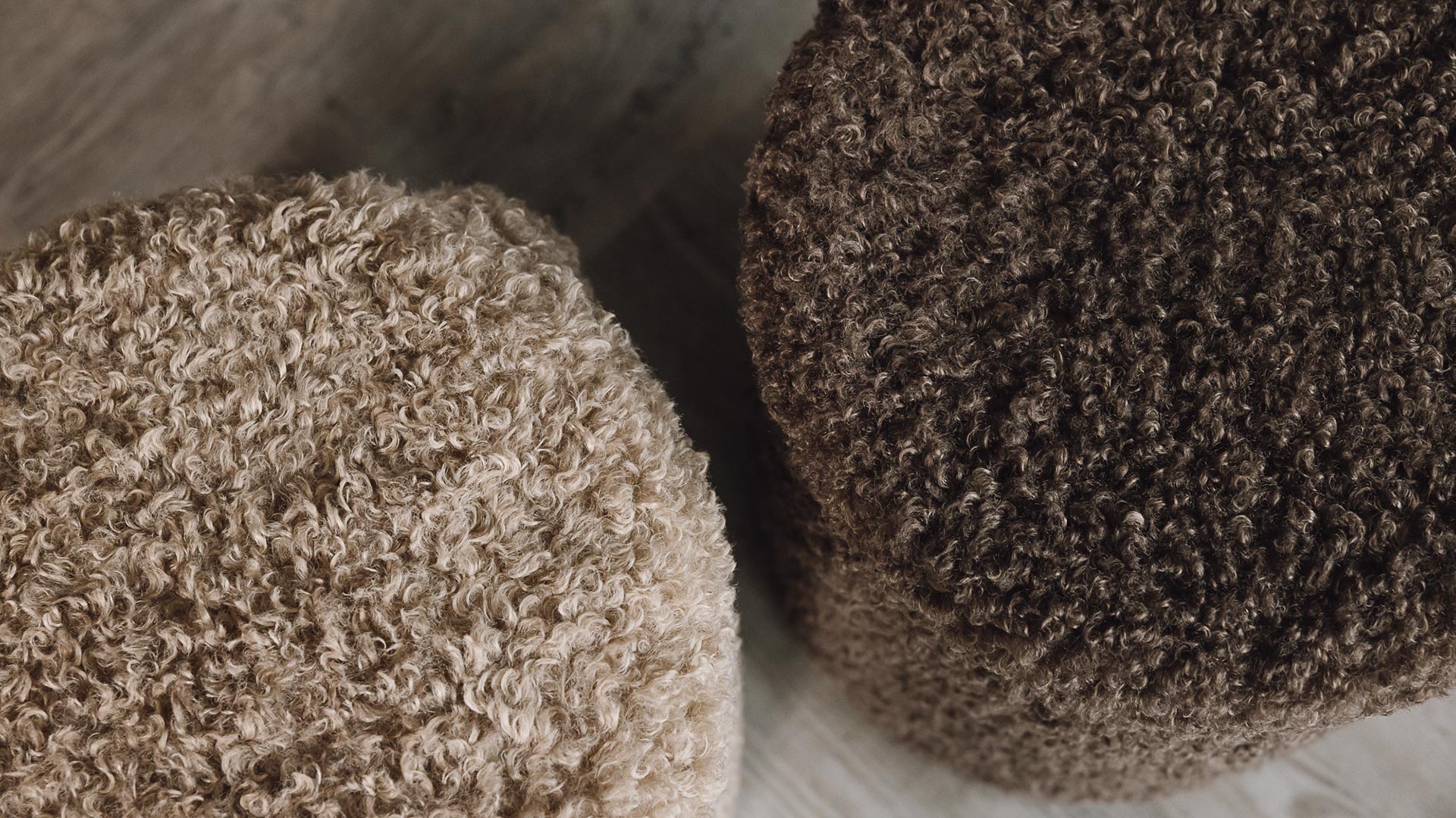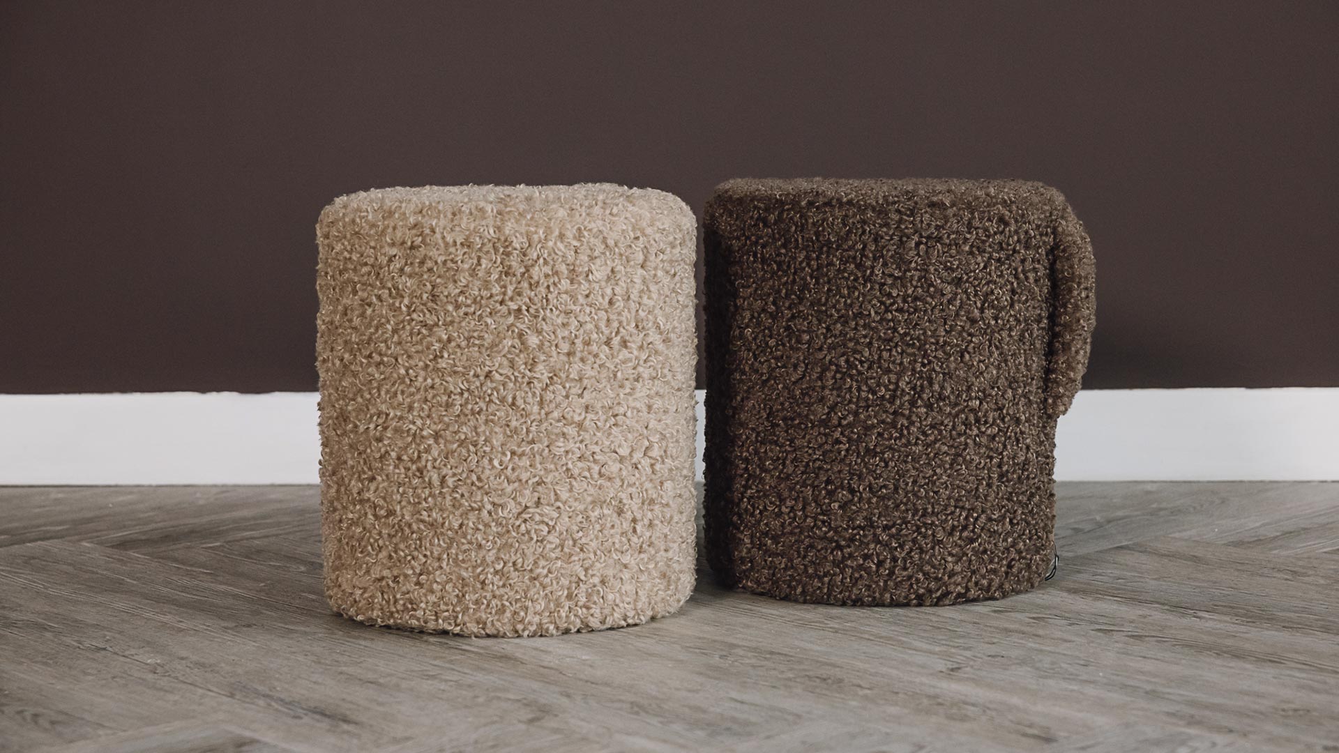 Luxuriously soft teddy pouffes, available in two neutral colours-ways; mushroom and chocolate. These compact pouffes can act either as a footrest or an occasional seat. These also feature a handy strap on the side to help easily carry them from room to room, as well as felt glides.