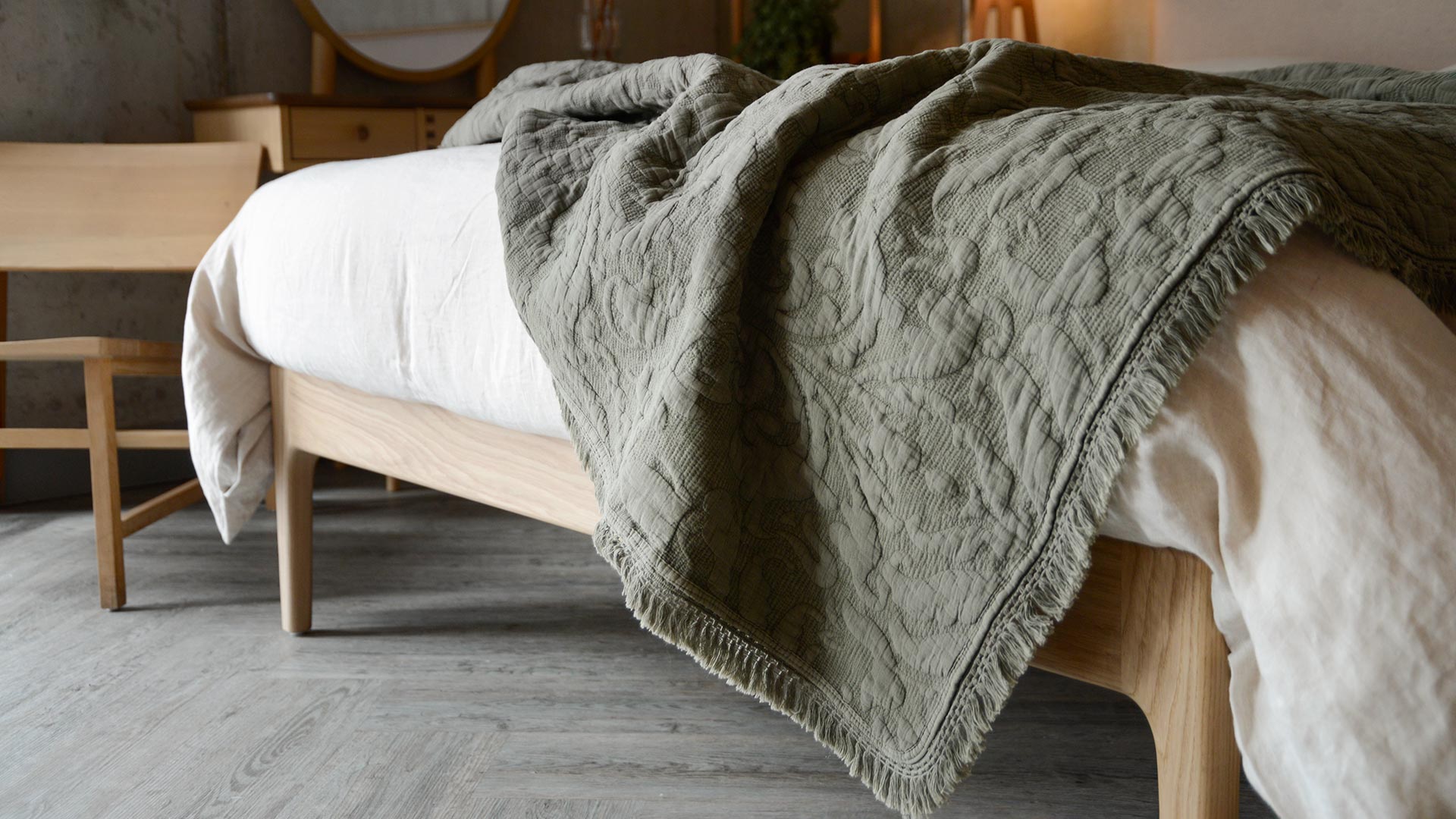 Cosy and classic, these textured floral cotton throws are timeless yet contemporary. Finished with a beautiful fringe to the edges and a woven pattern throughout, they are an easy, luxurious addition to any bedding set. Choose from three colours; stone, khaki or muted teal.