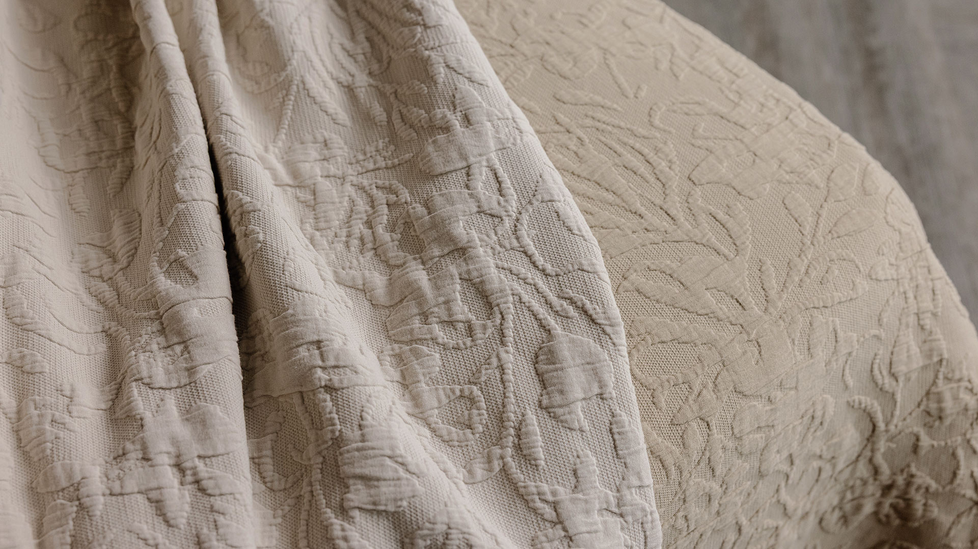 A soft, luxurious bedspread – it drapes beautifully – the textured, slightly cushioned floral design adds interest and warmth.
