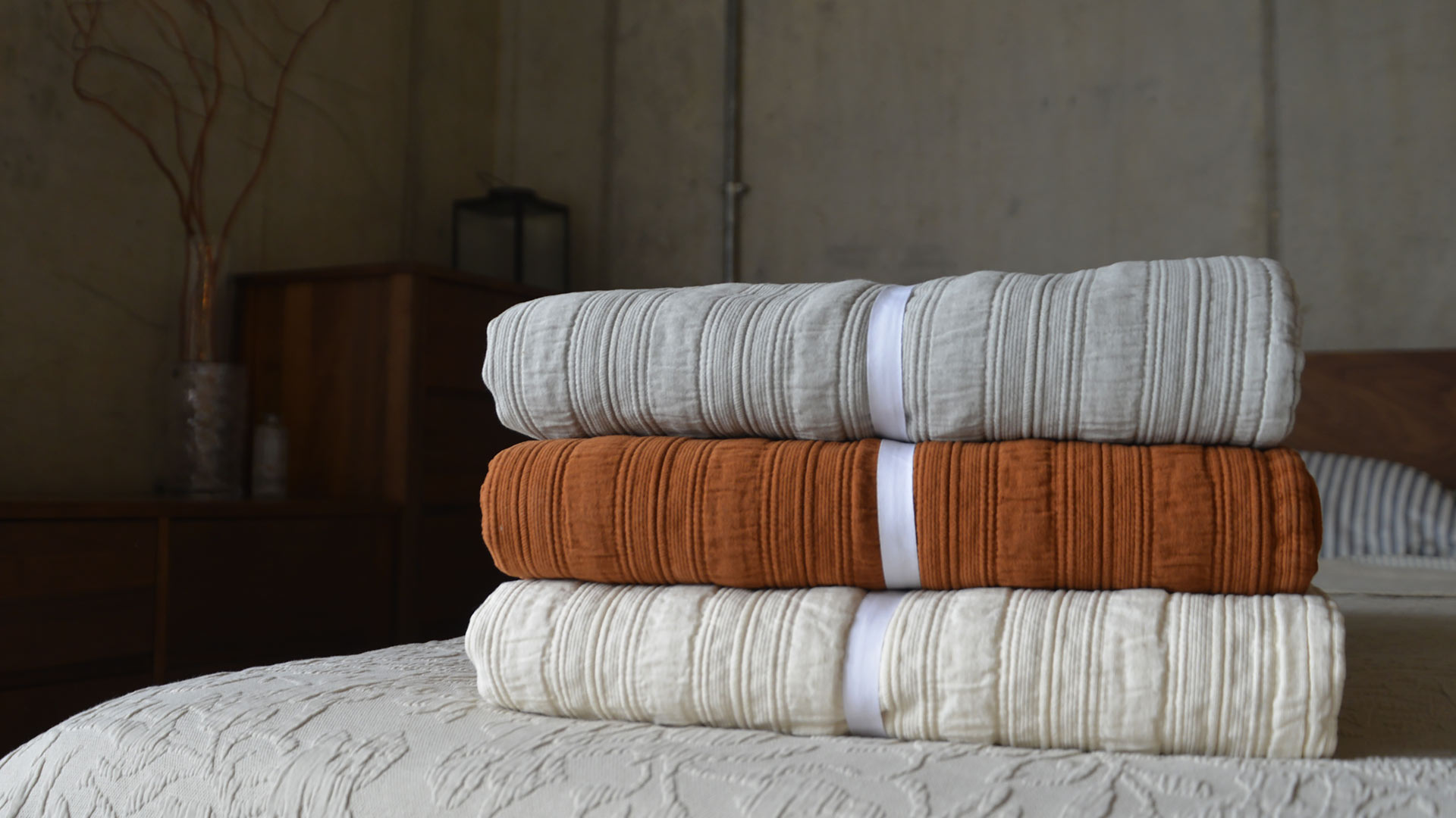 These textured stripe, pure cotton bedspreads are available in a choice of three on-trend shades, making it a great way to easily update your bedroom scheme! Made from 100% cotton, they are ideal for use as an additional throw over your bedding in colder months, or on its own as a light-weight quilt in the summer.