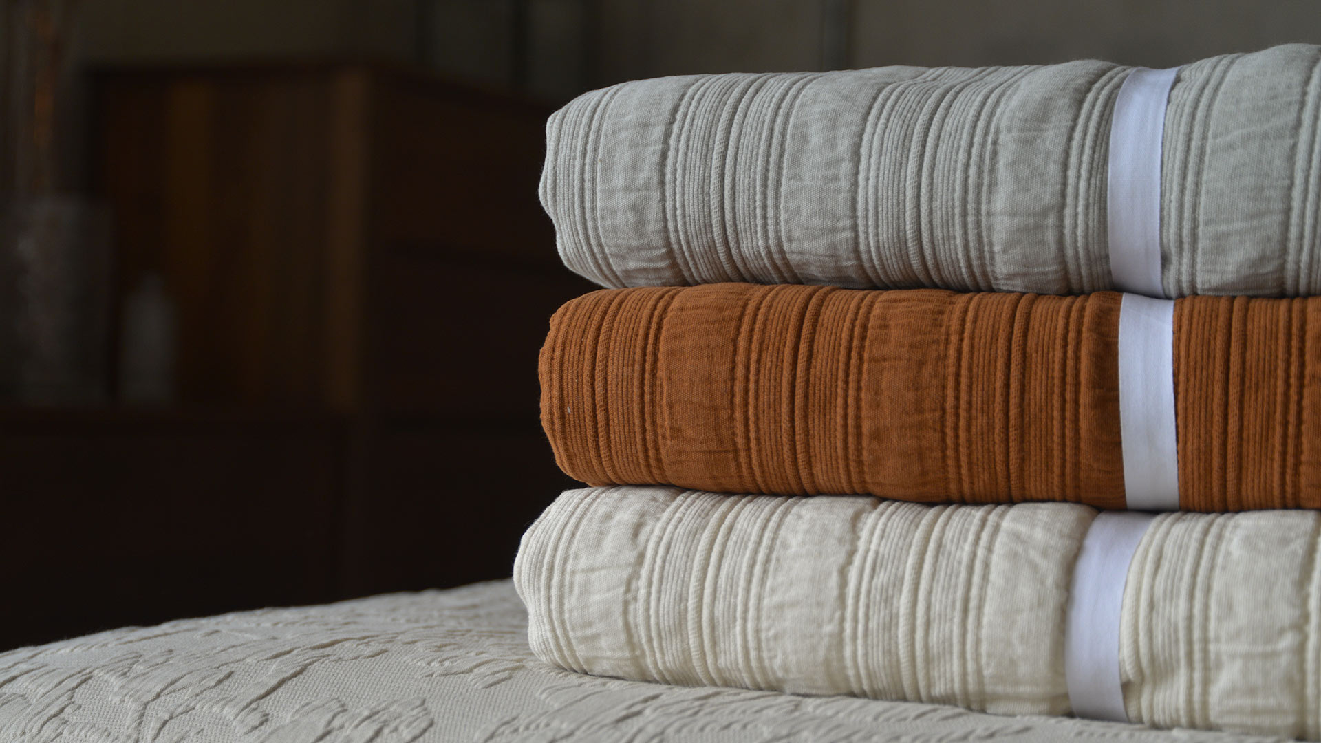A soft, luxurious Matelasse bedspread – it drapes beautifully – the textured, slightly cushioned stripe design adds interest and warmth.