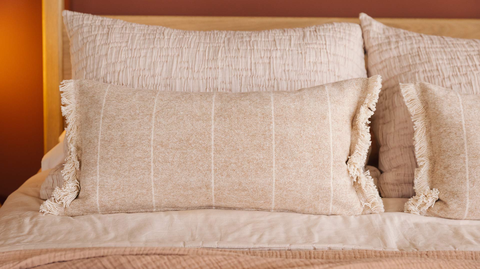 These thin stripe breakfast cushions boast pure cotton covers and have a gently textured, yet snug feel. Perfect on their own, or paired with other cushions.