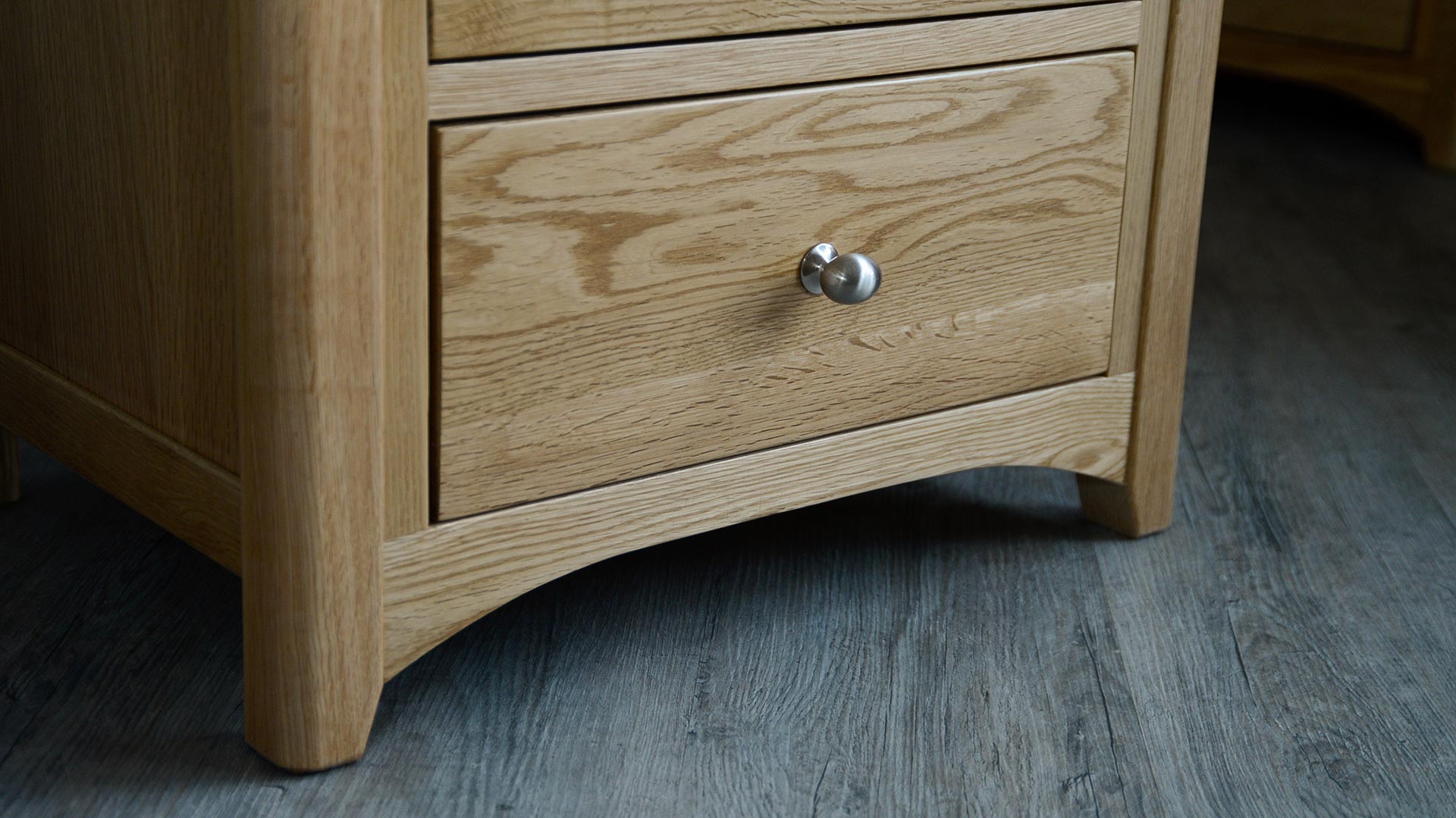If you’re ordering to match a Natural Bed Company Bed – these pieces of furniture are made using a different species of oak to that we use to craft our own beds. They have a warm tone, slightly less variable than the oak we use. However, oak does naturally warm and deepen over time, so they will likely be a better match as the timber ages.