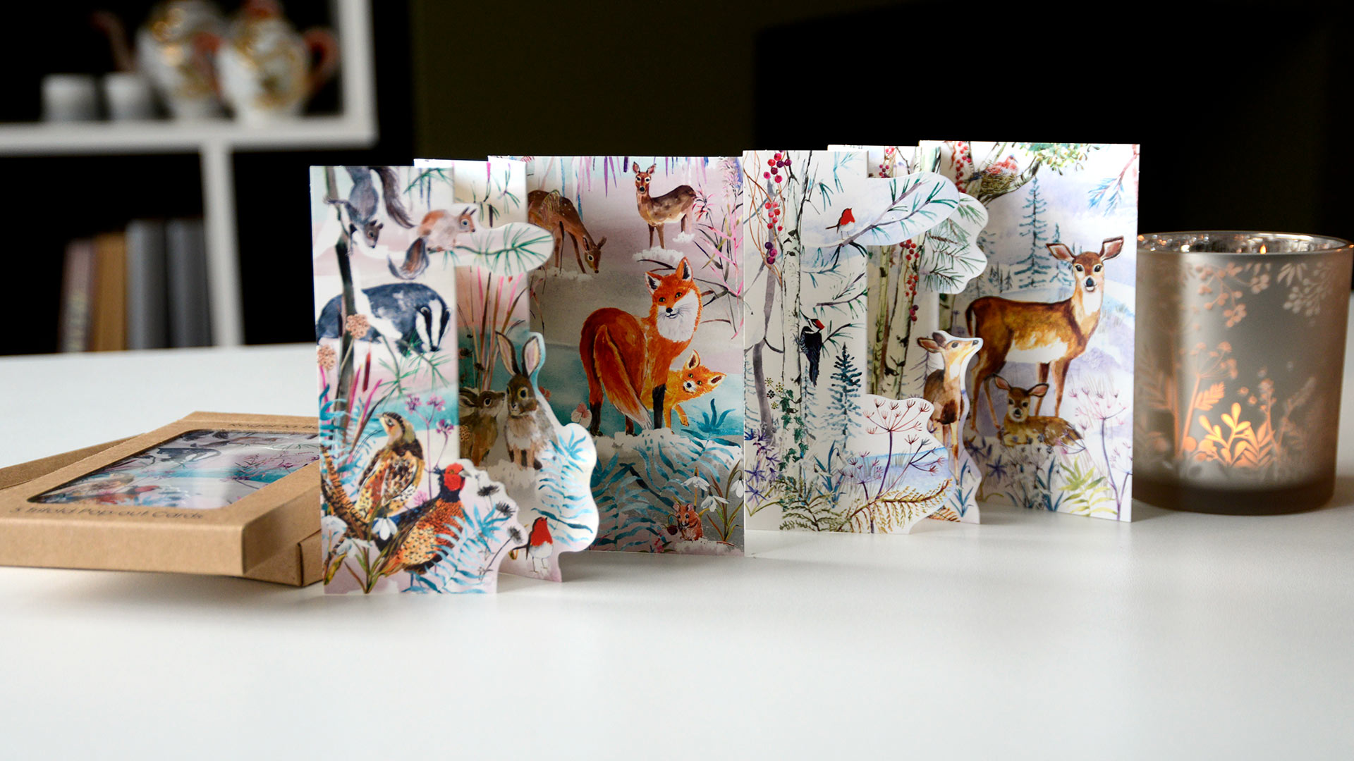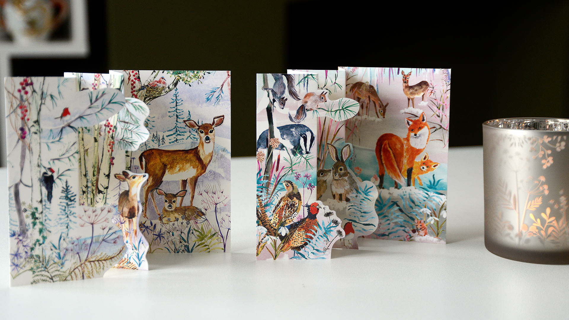 Choose from: Angels Around the Christmas Tree, Woodland Deer Family, Snowy Christmas Forest and Woodland Creatures.
