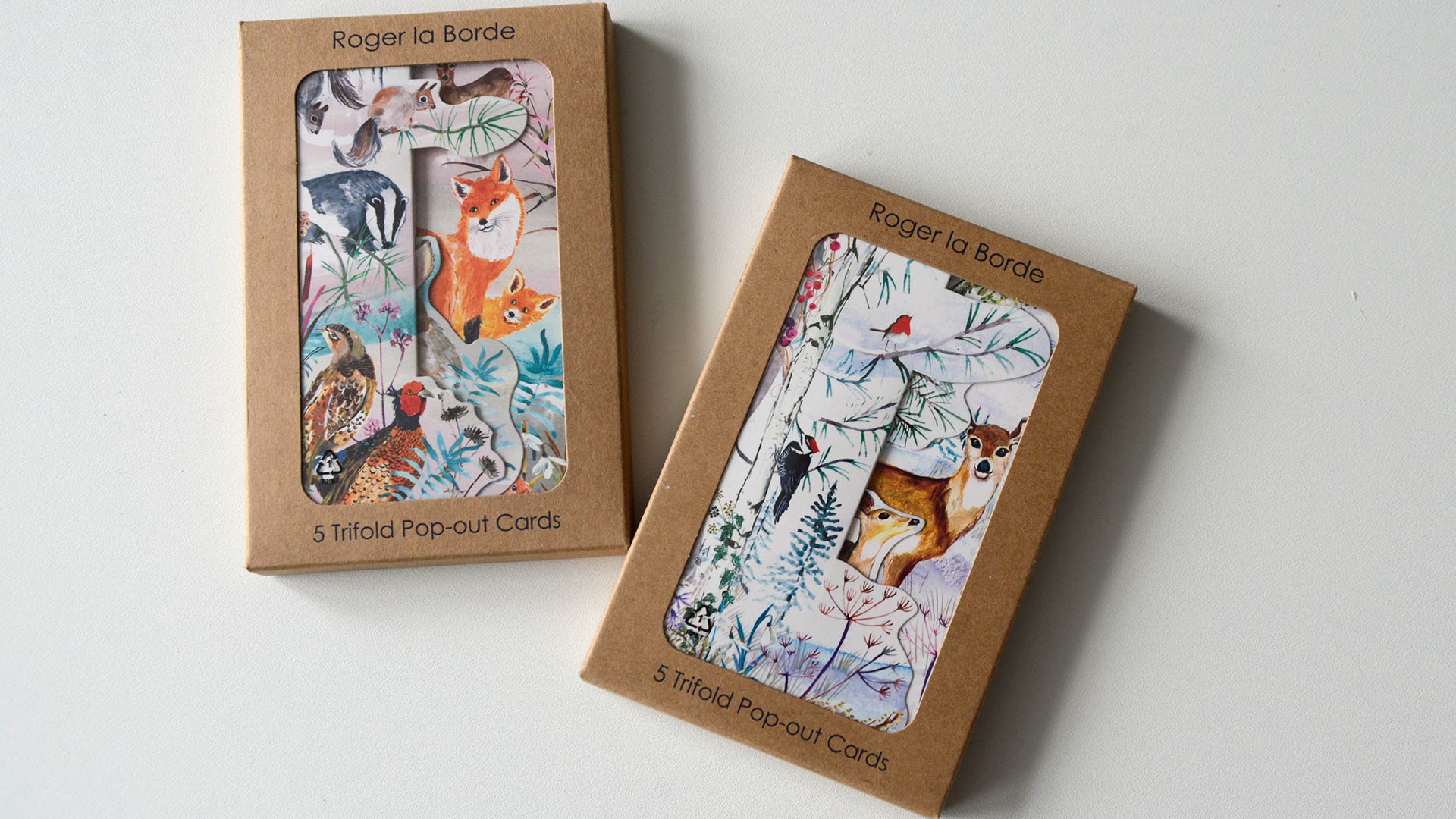 Packs of wonderfully illustrated trifold Christmas cards. Each pack contains 5 cards of the same design.