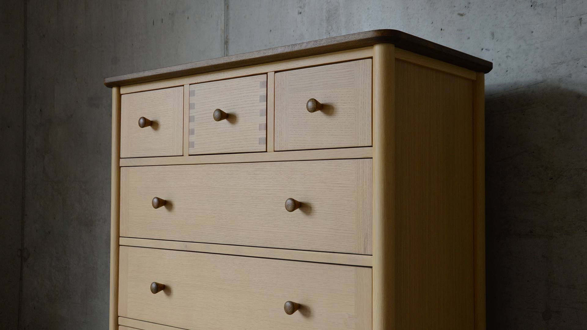 Solid and spacious, this seven-drawer chest of drawers is ideal to help you keep your bedroom tidy. Wide, deep drawers offer ample storage for books, clothes and accessories, keeping your space free of clutter. Though made to suit a bedroom traditionally, this unit would be equally at home in the hall or lounge – wherever you need extra storage! Made of a mix of solid oak and oak veneers, with a stained oak top and matching handles.