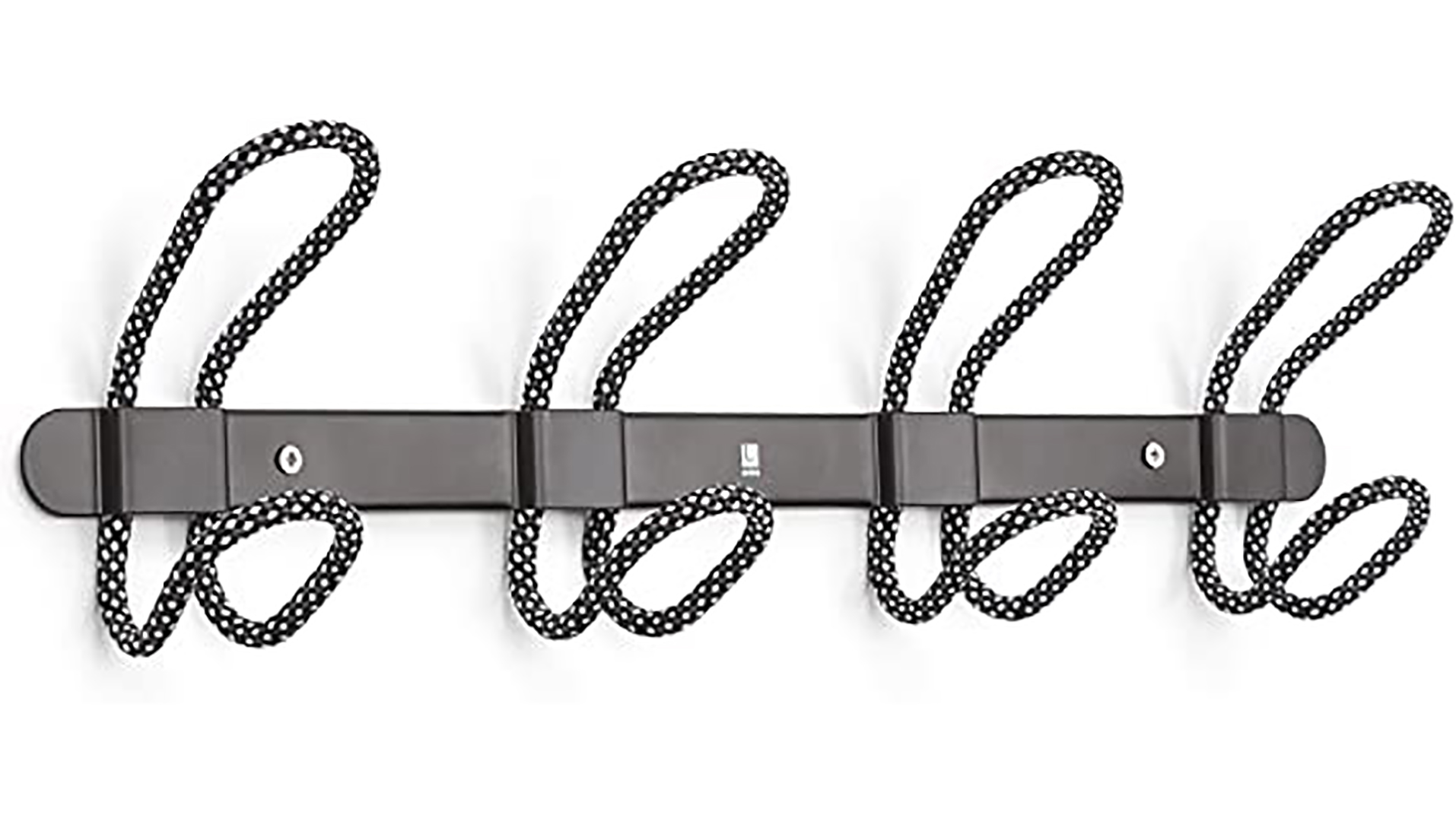 Lasso 4 Hook:Â 4 hooks in a lasso rope design. Can be wall mounted or hung over a door. (Wall Mounted: H: 13cm x W: 48cm x D: 7cm. Over the Door: H: 28cm x W: 48cm x D: 7cm)