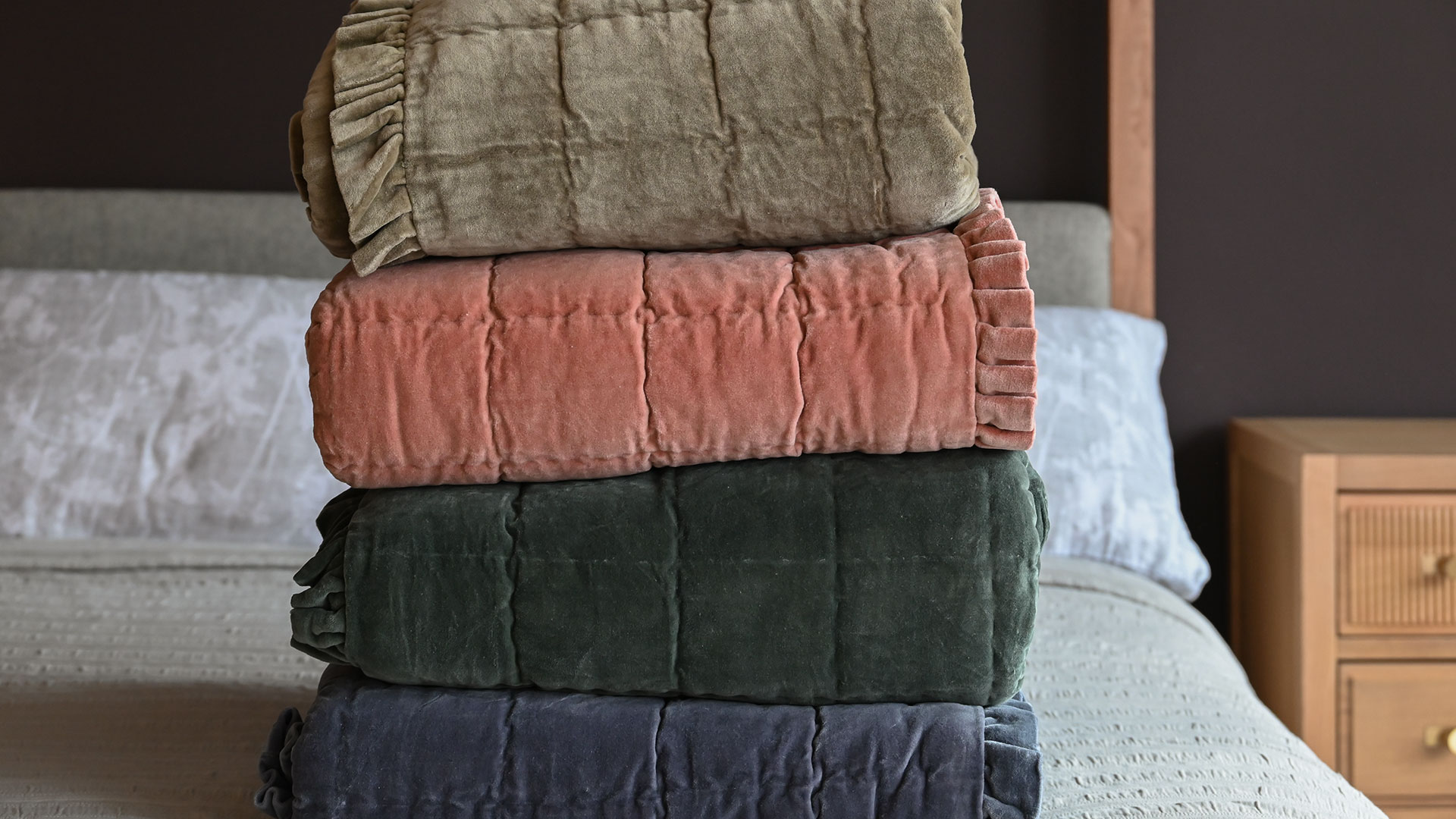 Add a touch of luxury with this gorgeous velvet ruffled bedspread. Crafted from soft cotton velvet with a contrasting cotton/linen reverse. Finished with an elegant ruffle border on all sides, it’s available in four beautiful colours to suit any bedroom style.