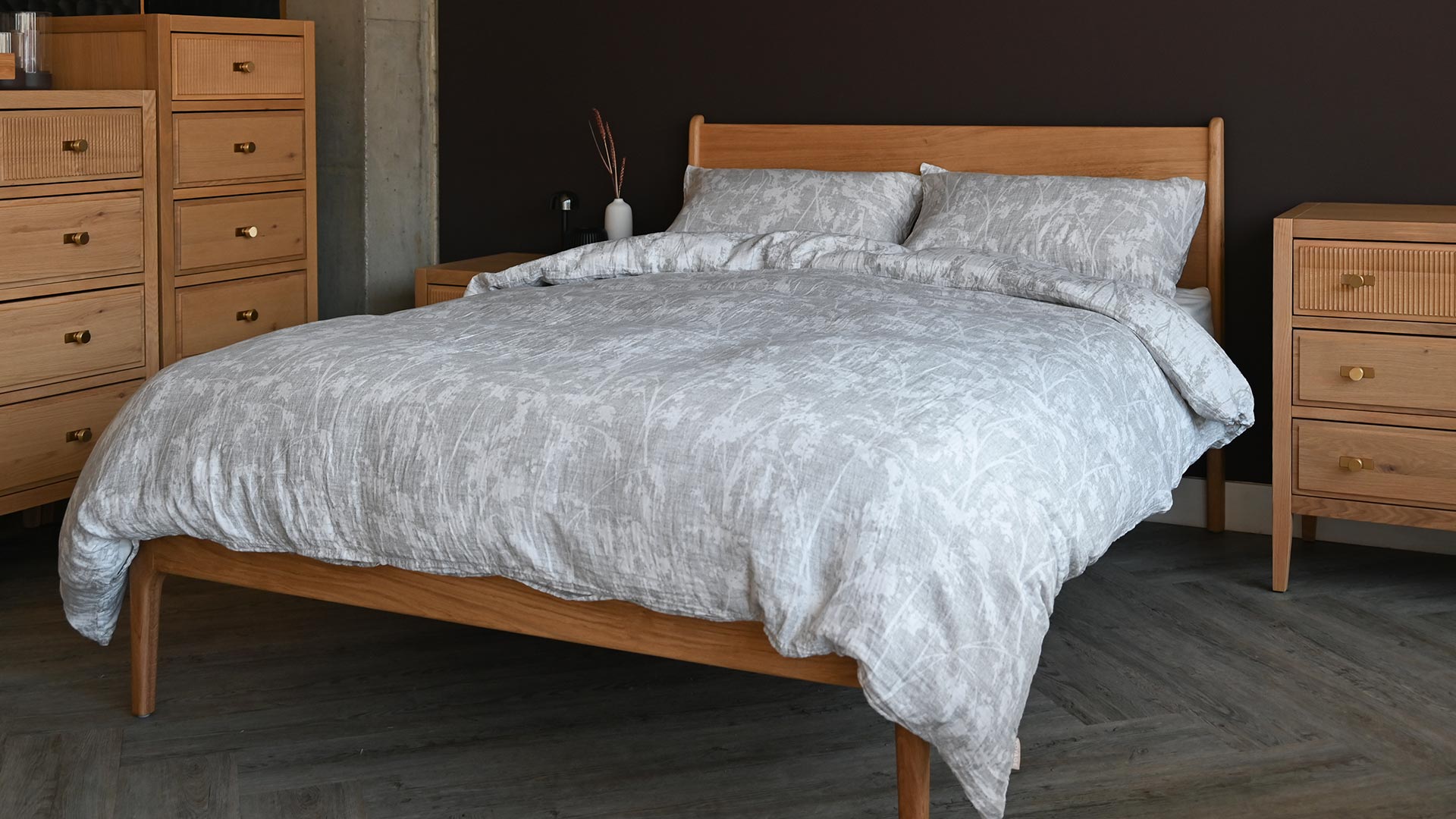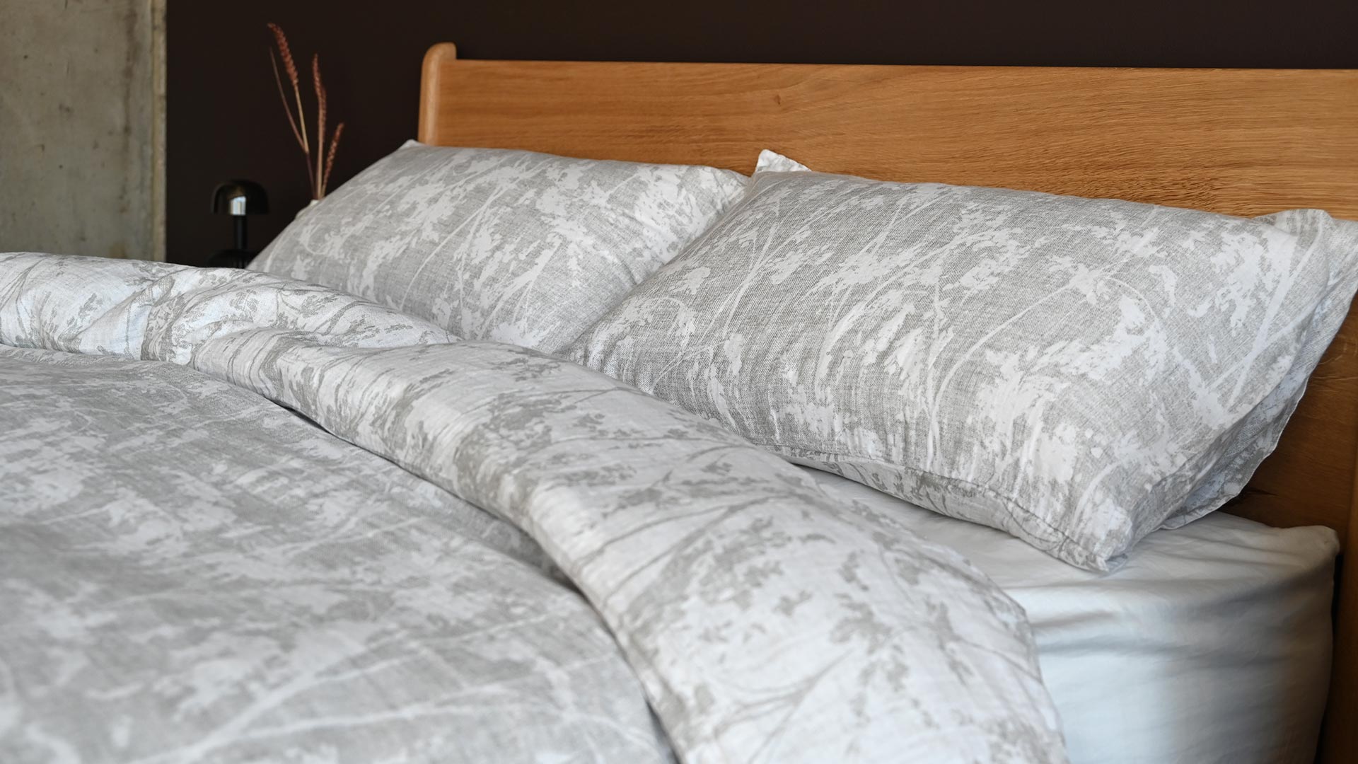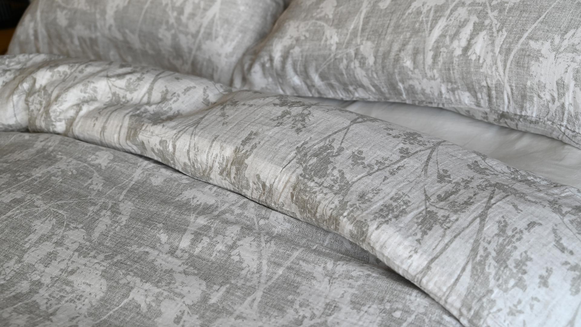 Super soft and cosy, this collection of vintage floral muslin bedding adds a homey charm with its meadow flower print. A neutral white background with a natural stoney grey printed pattern brings a soft and elegant feel to your bedroom.
