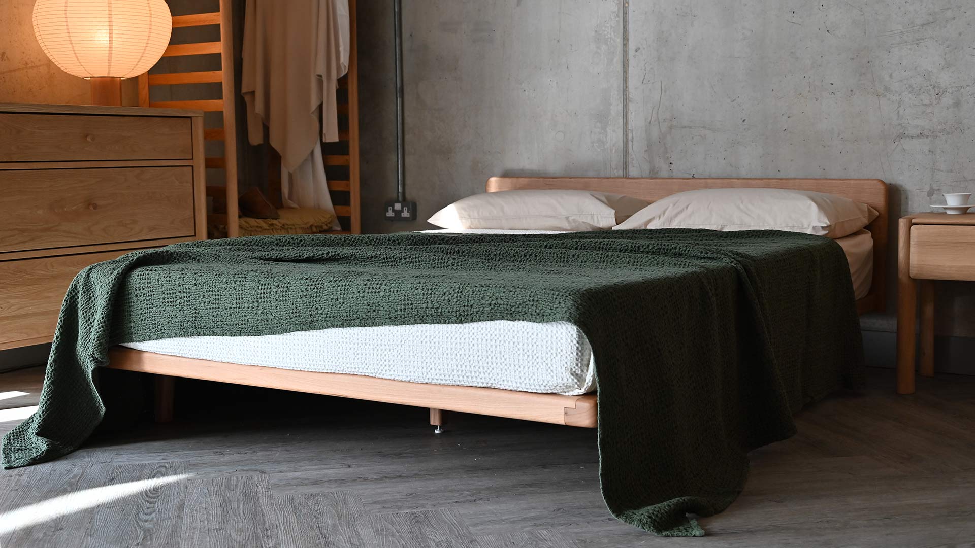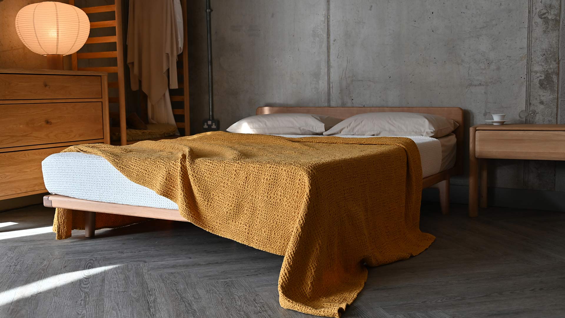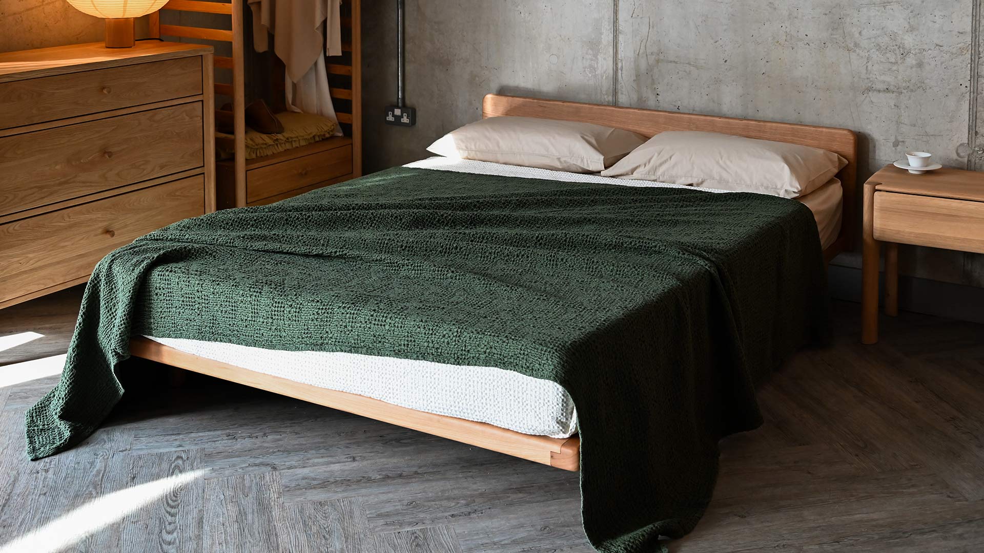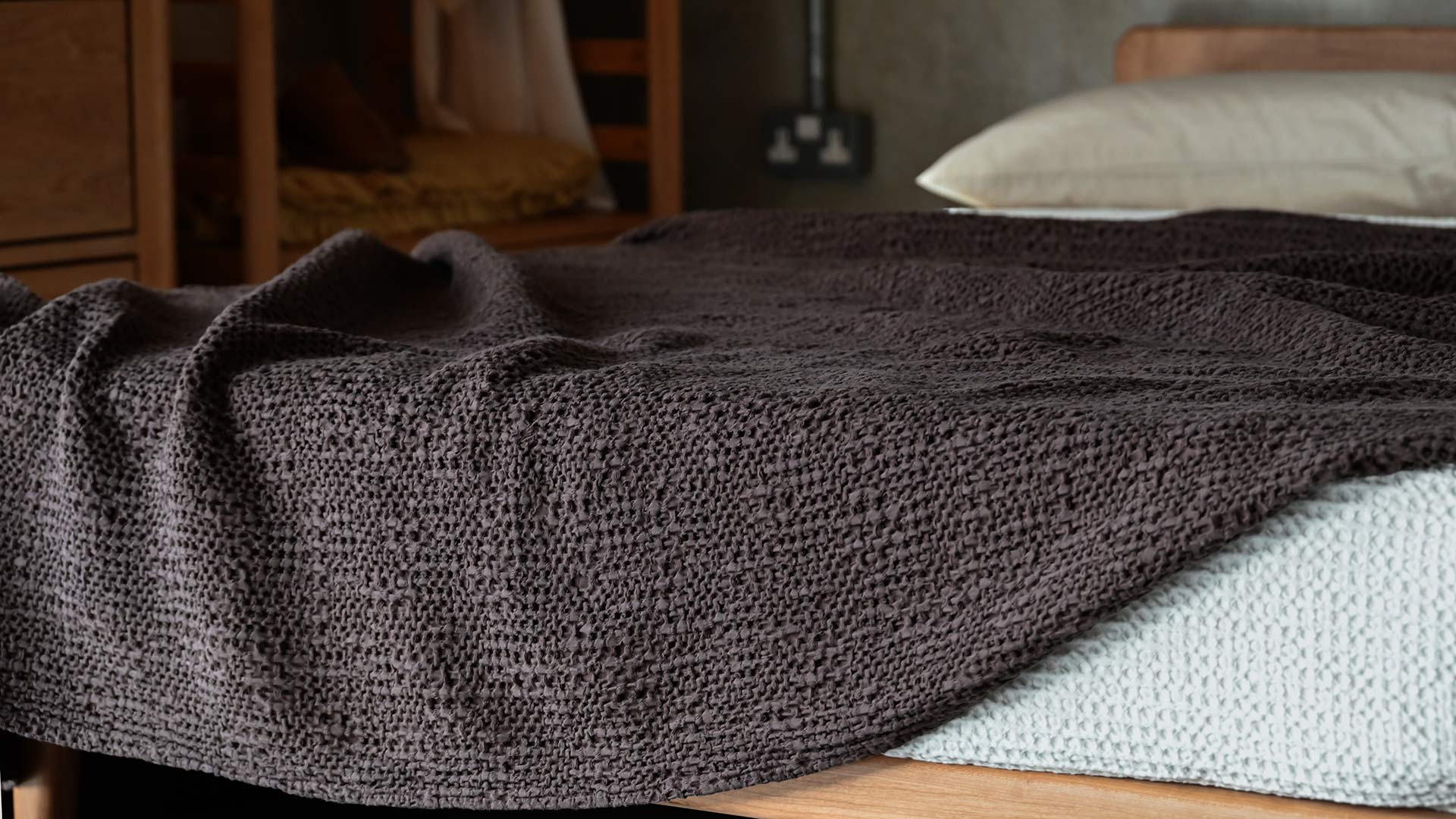 A soft, luxurious bedspread with a textured, waffle design. Available in a range of contemporary colours: deep espresso brown, dark olive green or rich mustard yellow.