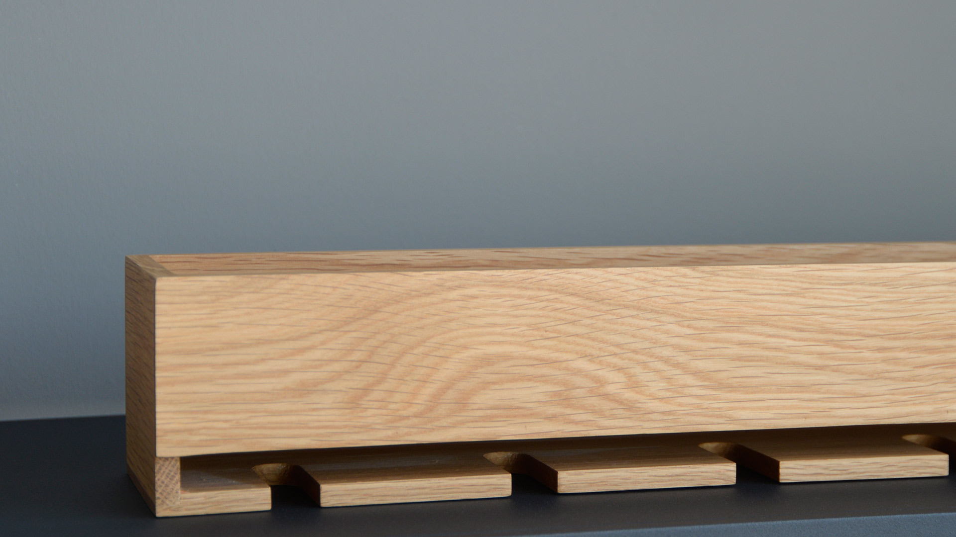 Made from sustainably harvested natural American white oak and oak veneers, selected for their warm colour, beautiful grain pattern and traditional hardwood durability. All edges look crisp but are carefully hand sanded to make them soft to the touch. Finished with a matt, water resistant lacquer.