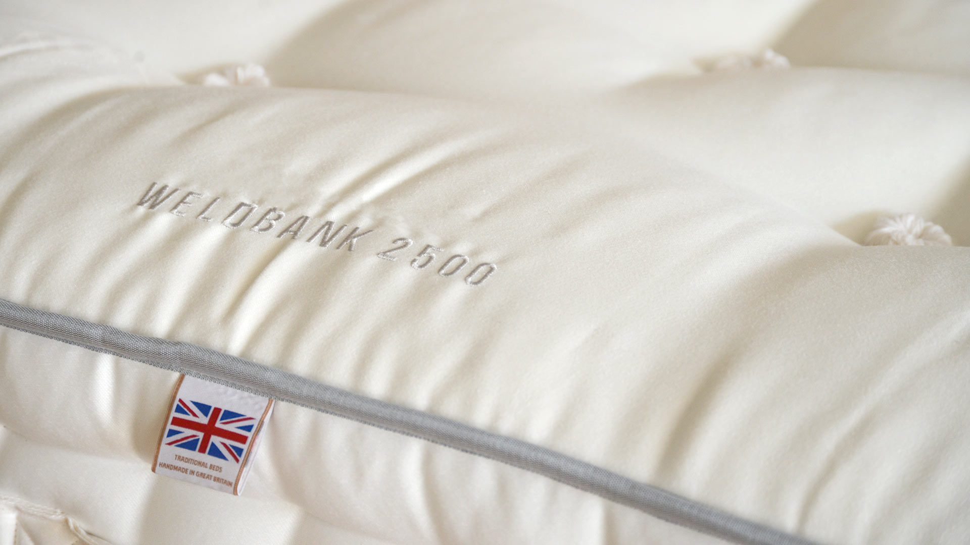 Upholstery Materials: Layered with polycotton including temperature regulating English fine spun cotton, Elkbond and Hampshire Wool. A single black tuft signifies the wool inside is Hampshire wool, it’s black because the sheep have black faces! A little-known fact is that Hampshire sheep produce softer wool than sheep in colder parts of the UK.