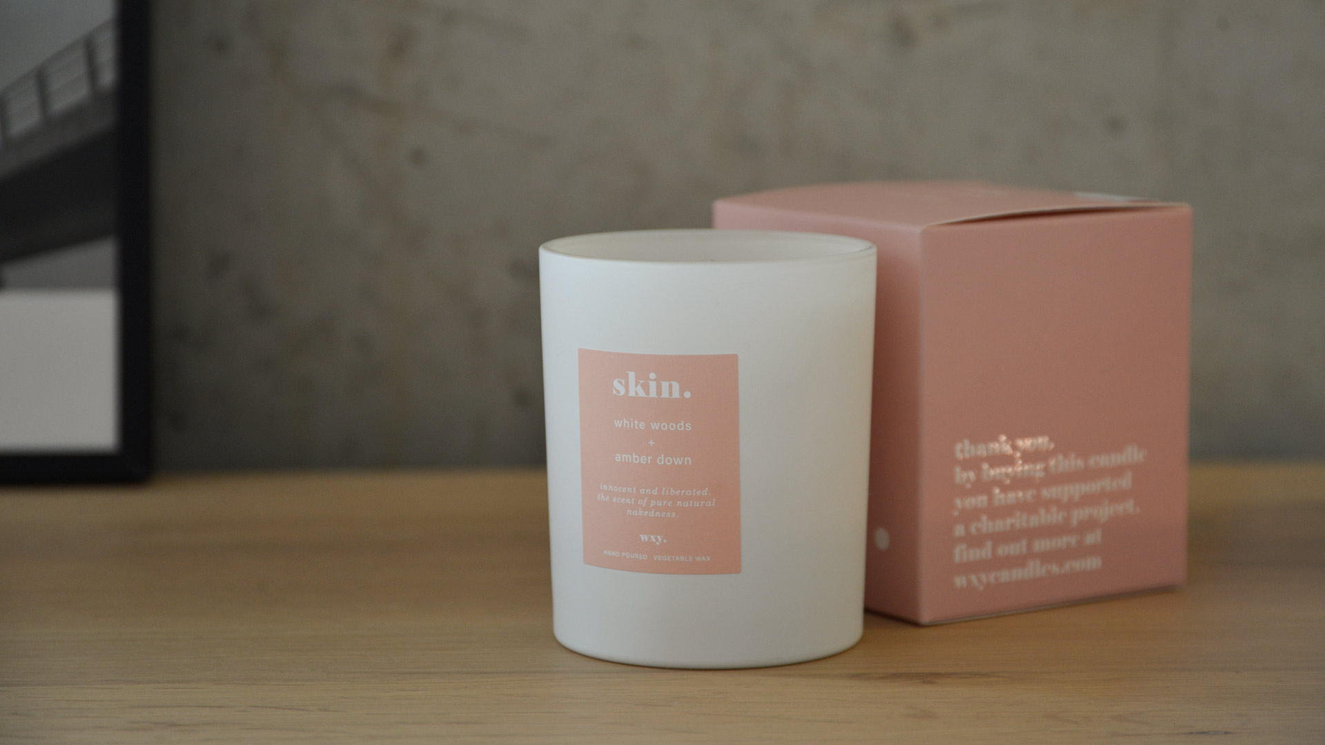 Scent – Skin: White Woods + Amber Down This scent is bright, fresh and clean with sweet floral top notes, imagine walking through a field of wild flowers on a summers day. Colour: Warm blush pink