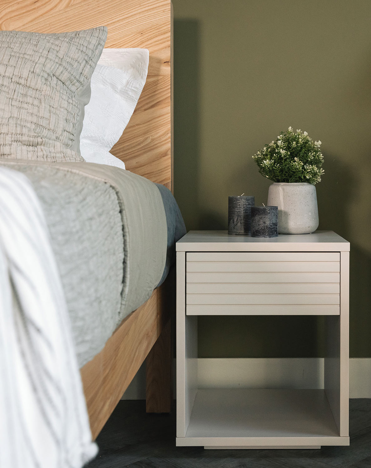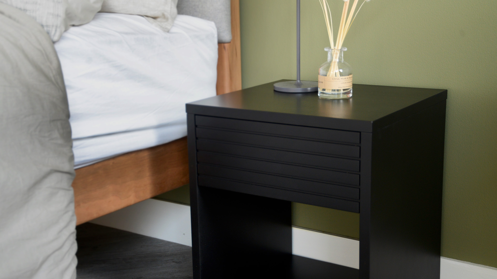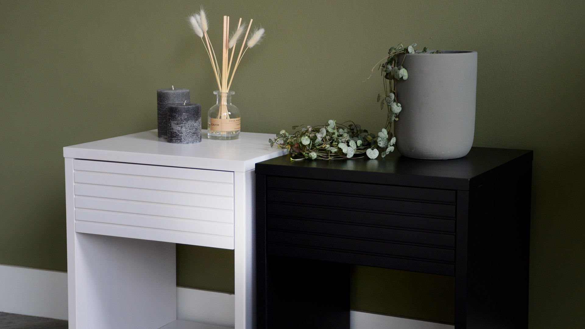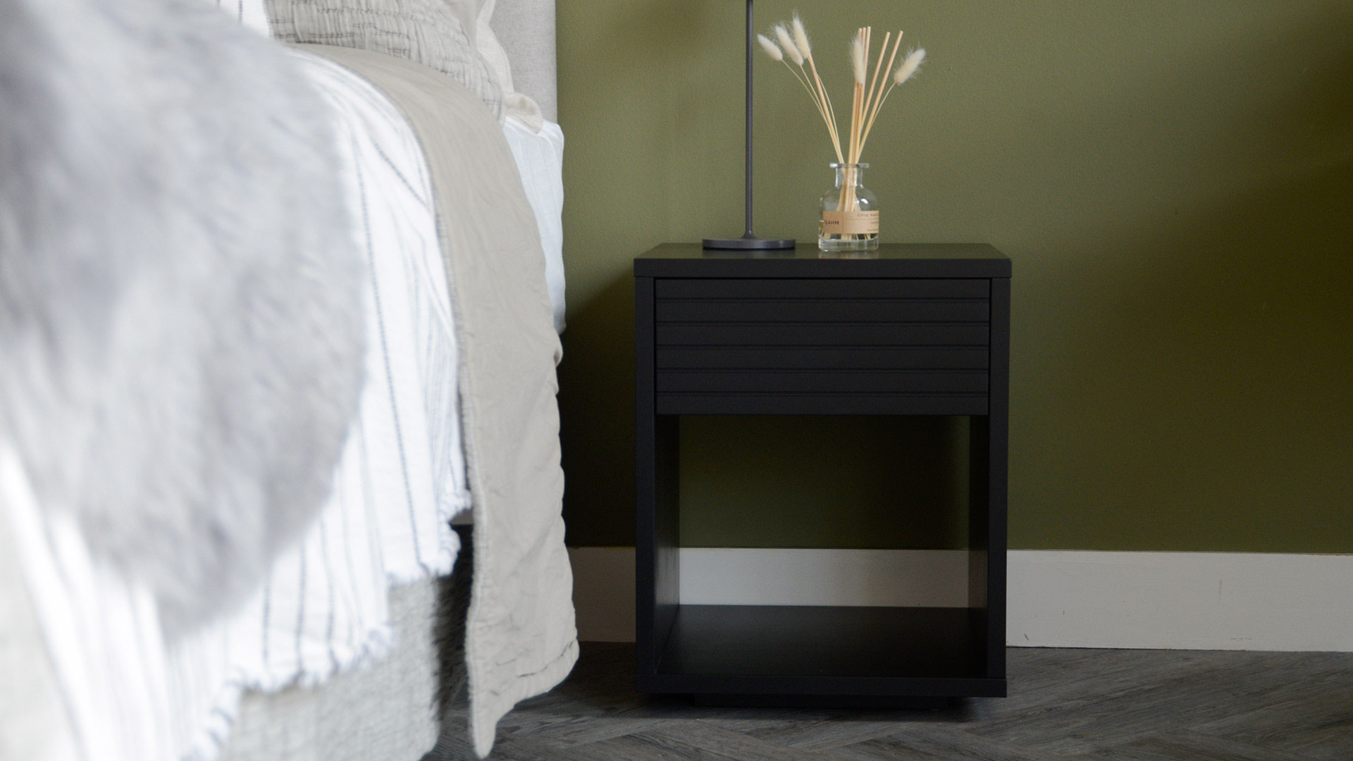 Scandinavian style meets clean lines in these stained birch 1 drawer units. The clean lines of this design, alongside the grooved drawer panel detail, makes it easy to match with with both contemporary and Scandinavian room styles. The storage drawer is perfect for your glasses, a book or evening skincare products. Whilst the bottom shelf would hold slippers, a blanket or make a handy spot for your hot water bottle in winter months.